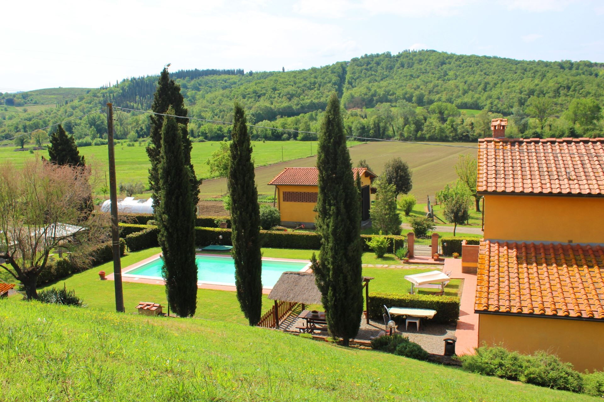 Trovate il casolare nella quiete delle splendide colline dell'Alta Val di Cecina, con una bella vista su infiniti e mutevoli paesaggi naturali. Morbide colline verdi, distese di campi coltivati color oro e cieli azzurri sconfinati, di tutto questo potrete godere dal giardino e dalla vostra piscina. Il posto perfetto, secondo noi, per una vacanza indimenticabile.