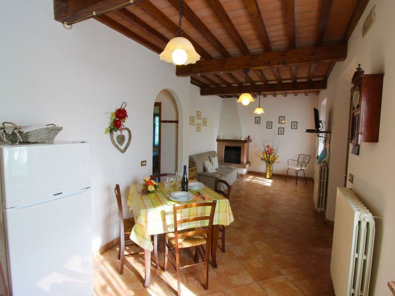 Appartamento al piano primo con ingresso da scala esterna, composto da ampio soggiorno-pranzo con angolo cottura, camino e divano, camera matrimoniale, camera con due letti singoli e bagno con doccia.