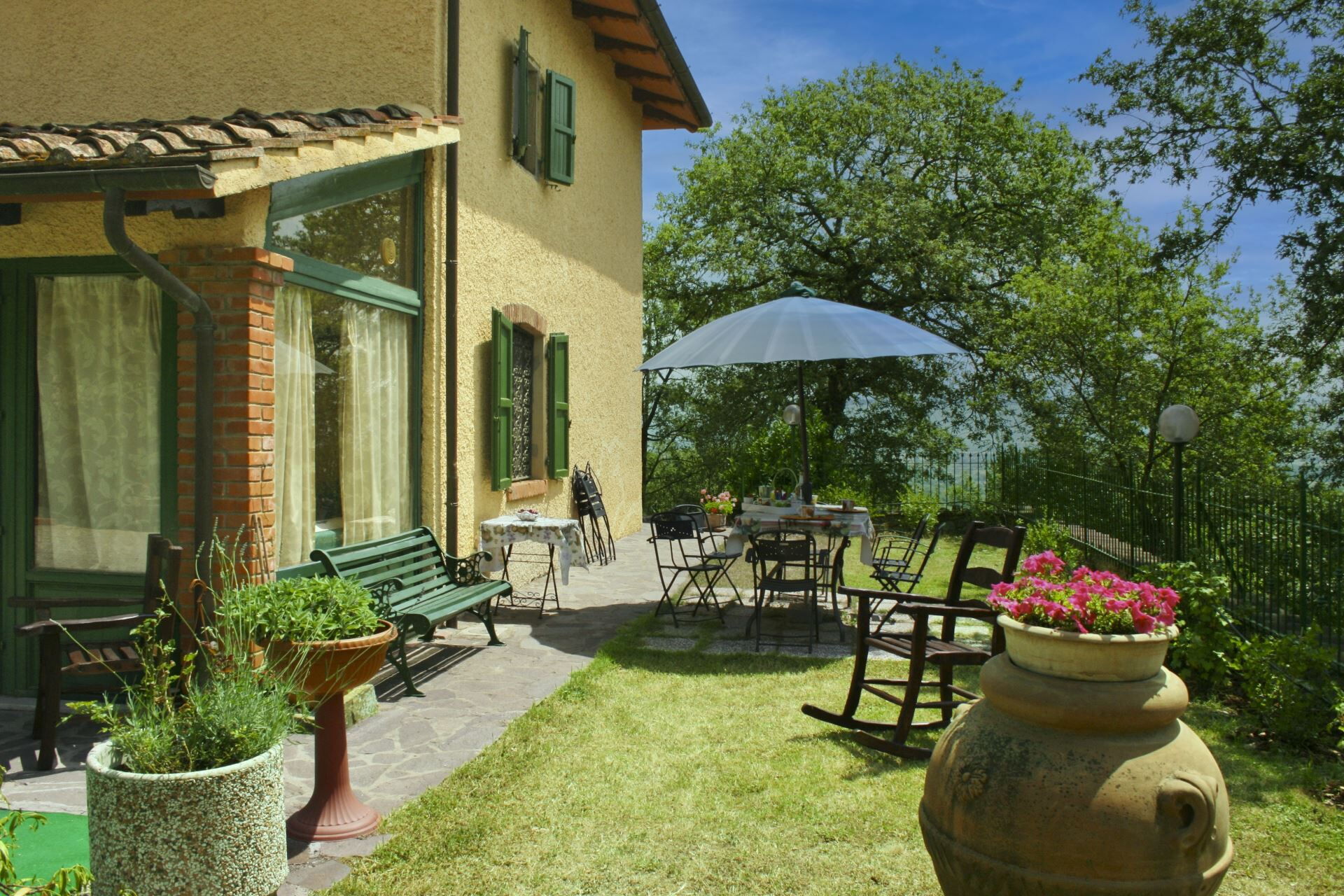 Il vero fiore all'occhiello della casa è, però, la vista mozzafiato che si gode dalla panoramicissima piscina privata (dimensioni m. 5x10, profondità m. 0,90-1,95 completamente recintata e dotata di doccia solare - aperta dal 1 Giugno al 30 Agosto). Da qui il vostro occhio si perderà sulla vallata fino alle porte della città di Arezzo, e l’arredamento da esterni in ferro battuto, gli ombrelloni, la zona barbecue ed un gazebo con salottino vi permetteranno di trascorrere momenti indimenticabili in compagnia di familiari e amici in totale privacy.