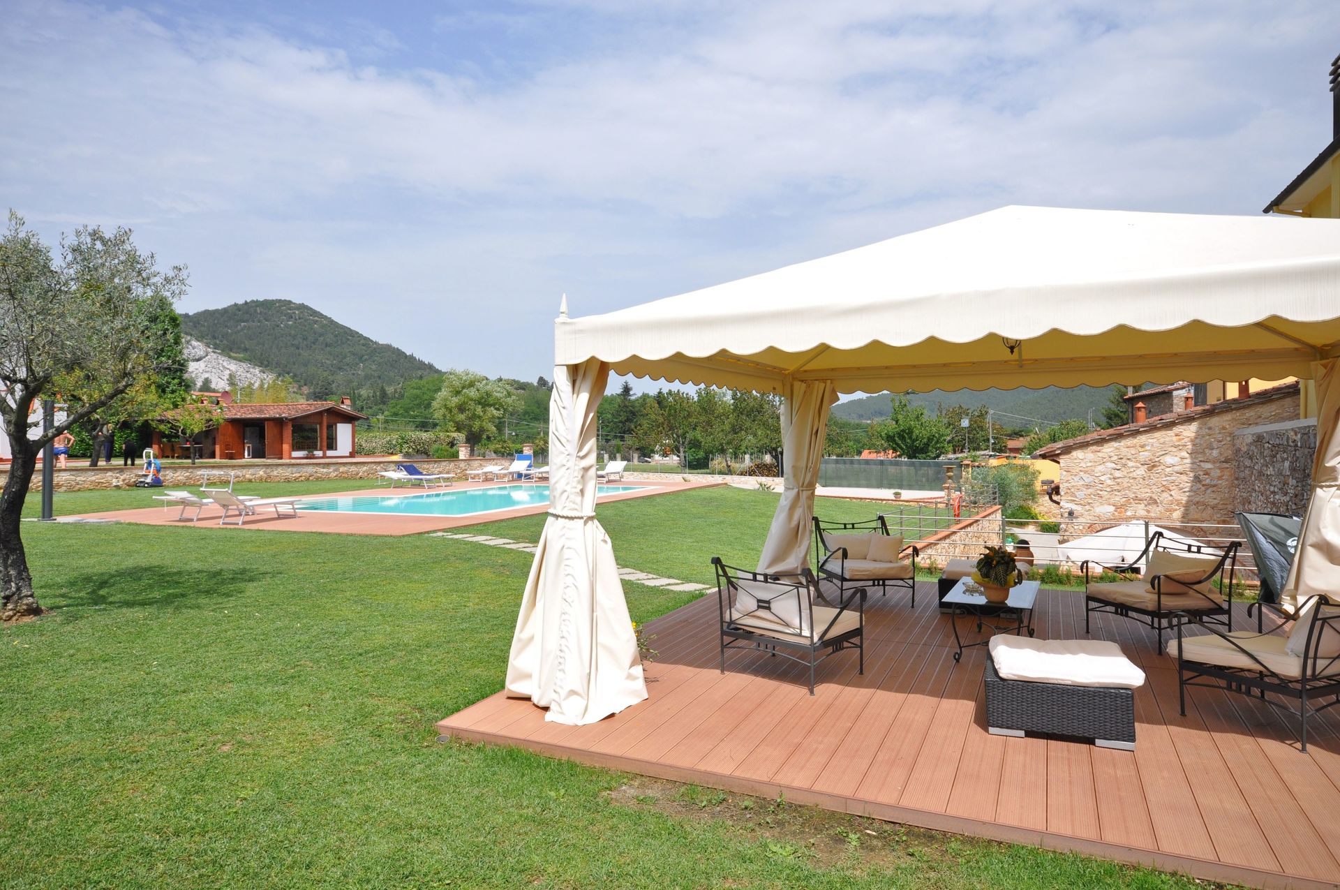 Sehr schön gelegen. Die Anlage ist Top gepflegt. Die Ferienwohnung selbst ist mit allem ausgestattet. Verbrauchsmaterialien wie Spülmaschinentabs, Müllbeutel etc. mussten allerdings selbst gekauft werden. Lucca und Pisa sind zum Einkaufen aber binnen 15 Minuten mit dem Auto zu erreichen.
