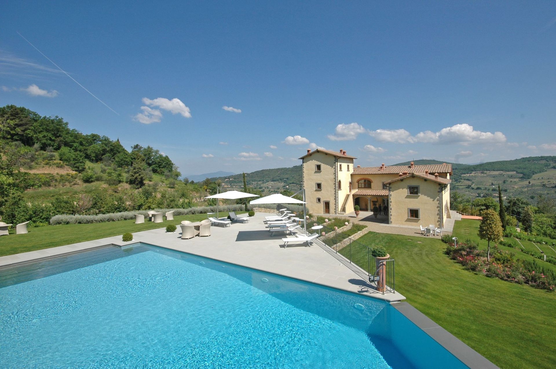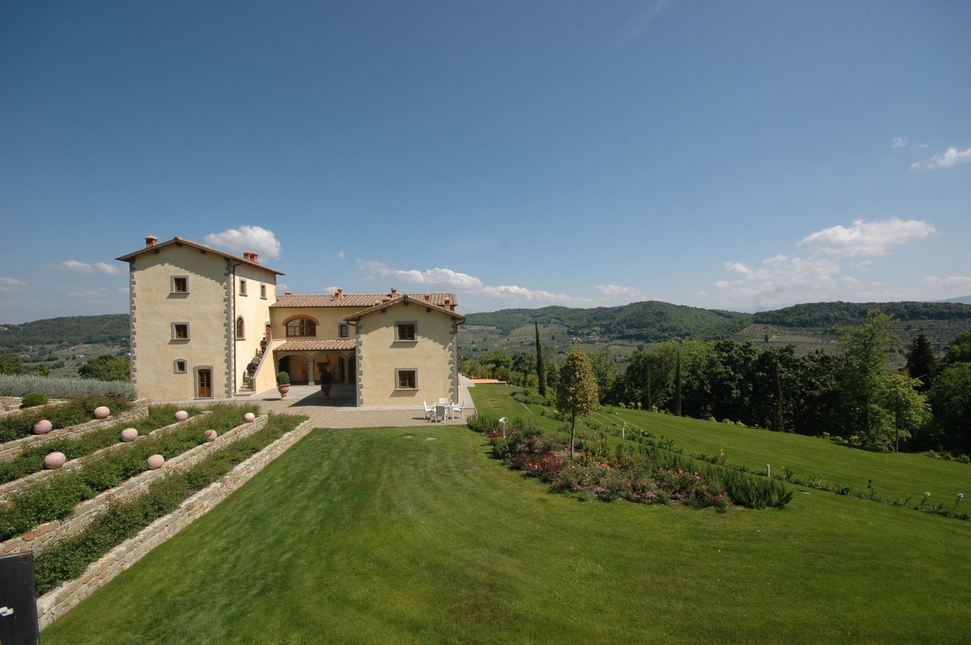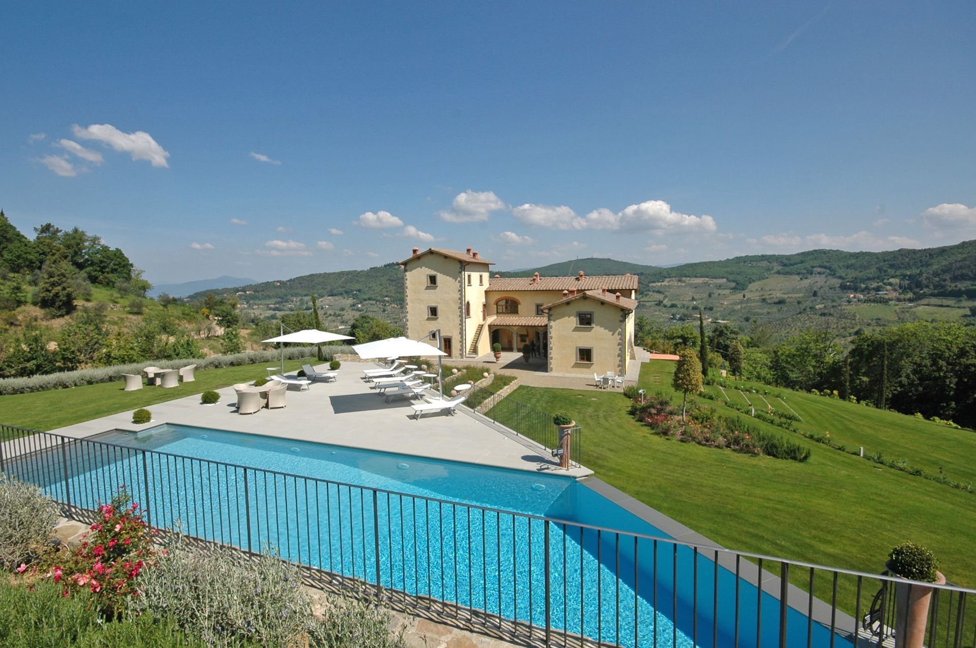 Bellissima proprietà con 7 appartamenti situata in posizione tranquilla e panoramica sulle colline intorno a Firenze. L’intera struttura risale al 1200 ed è stata completamente ristrutturata e trasformata in confortevoli e moderne abitazioni. La proprietà dispone di tutti i più moderni comfort pur mantenendo inalterata le caratteristiche architettoniche originarie. Un grande spazio esterno costituito da prati e solarium ospita una bellissima piscina con cascata e zona idromassaggio. Situata a soli 14 km da Firenze la posizione della proprietà permette di raggiungere molto facilmente le mete più famose e rinomate della Toscana e della vicina zona del Chianti.