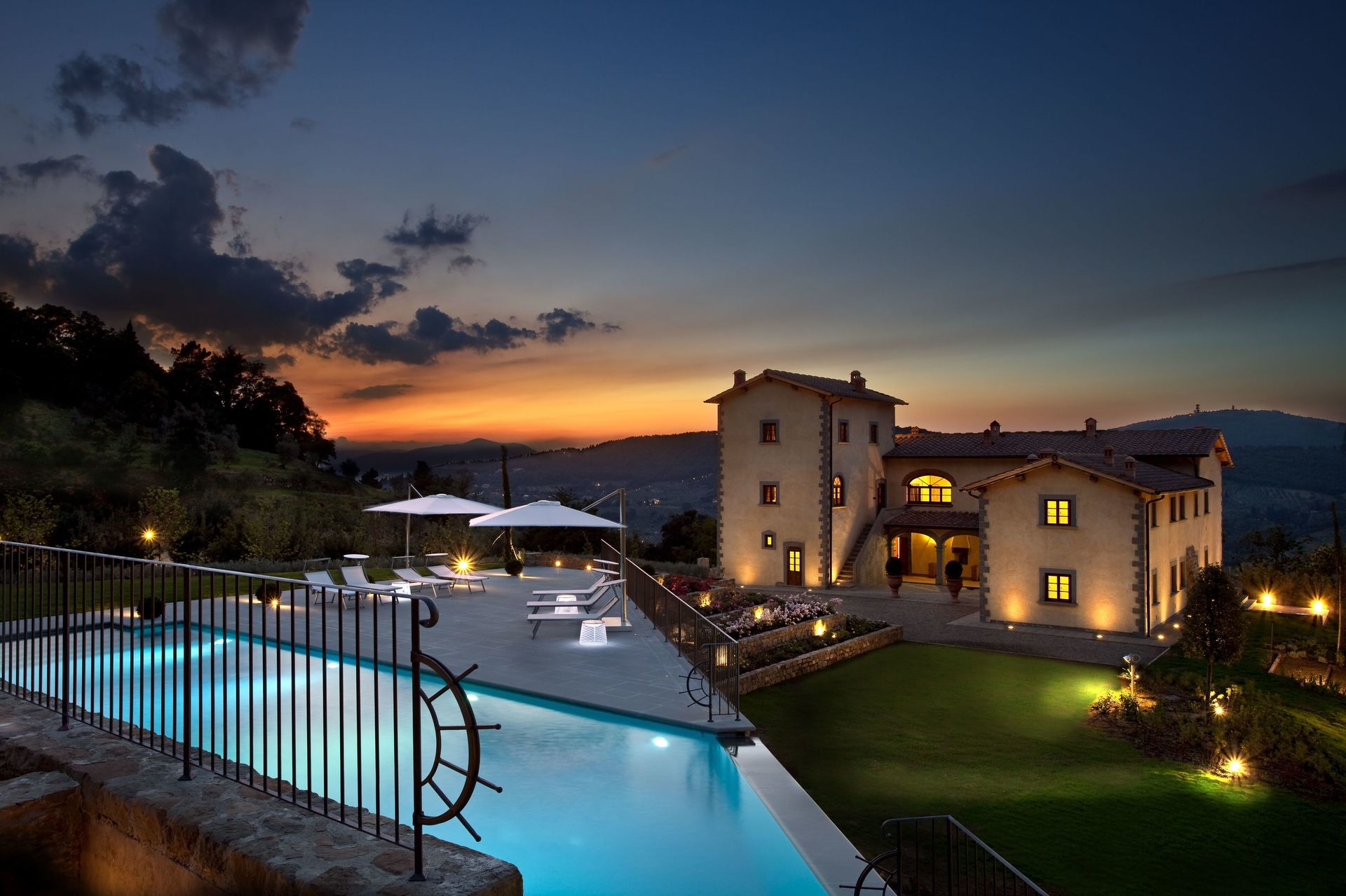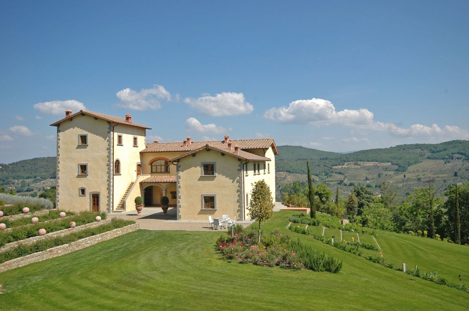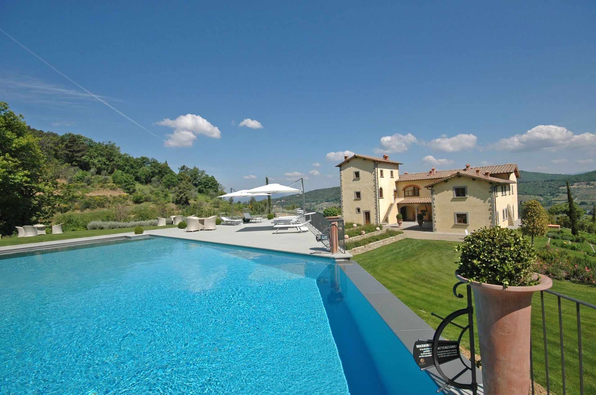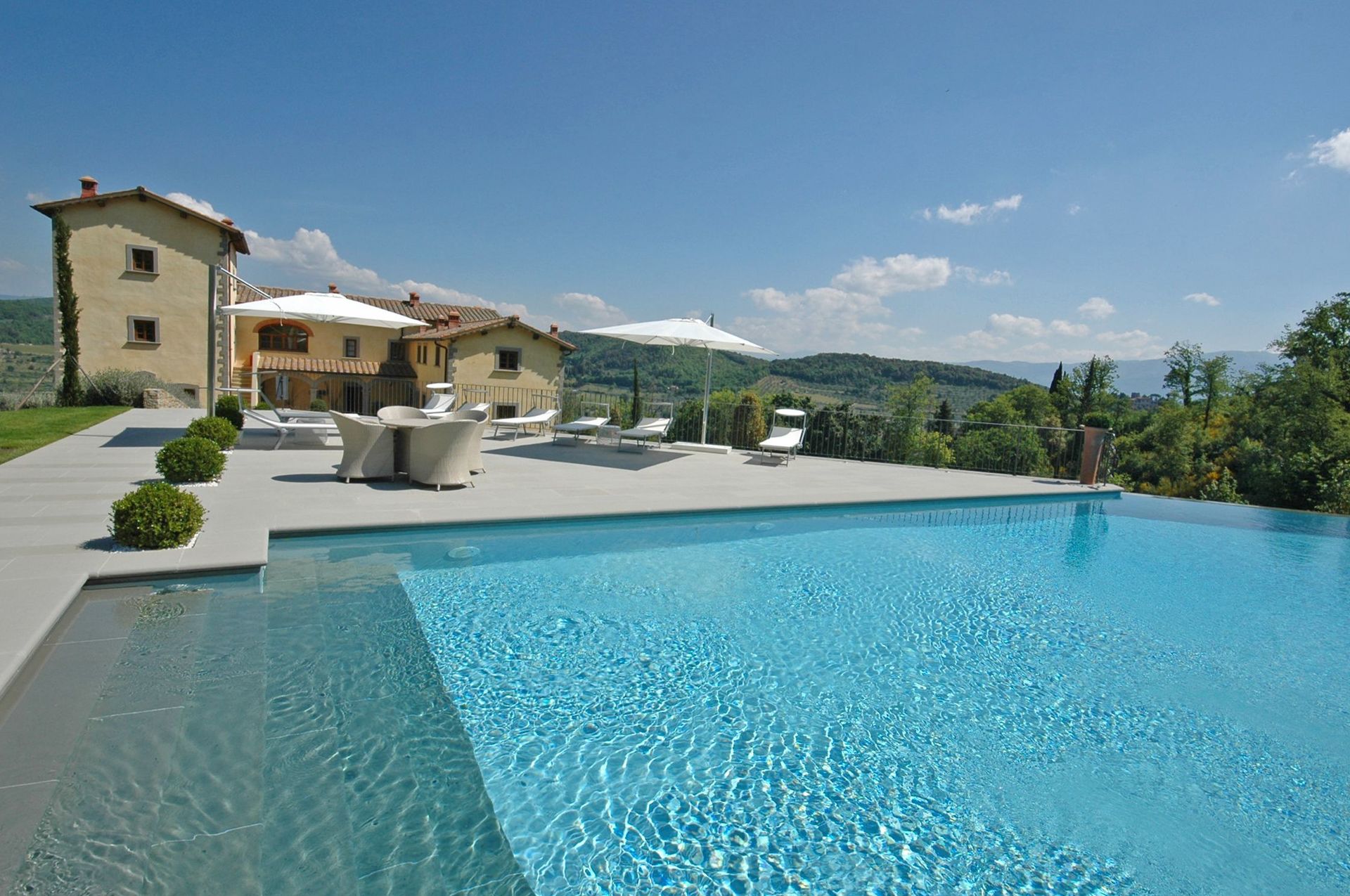 Bellissima proprietà con 7 appartamenti situata in posizione tranquilla e panoramica sulle colline intorno a Firenze. L’intera struttura risale al 1200 ed è stata completamente ristrutturata e trasformata in confortevoli e moderne abitazioni. La proprietà dispone di tutti i più moderni comfort pur mantenendo inalterata le caratteristiche architettoniche originarie. Un grande spazio esterno costituito da prati e solarium ospita una bellissima piscina con cascata e zona idromassaggio. Situata a soli 14 km da Firenze la posizione della proprietà permette di raggiungere molto facilmente le mete più famose e rinomate della Toscana e della vicina zona del Chianti.