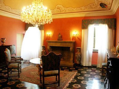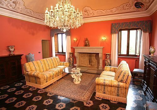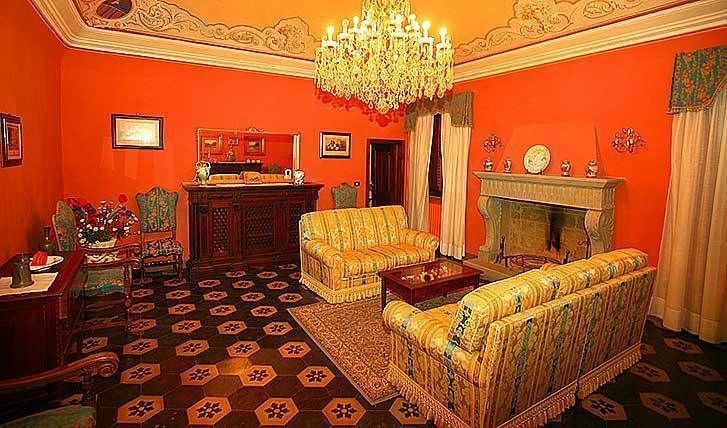 Villa furnished with beautiful antiques, rich colors and draperies.