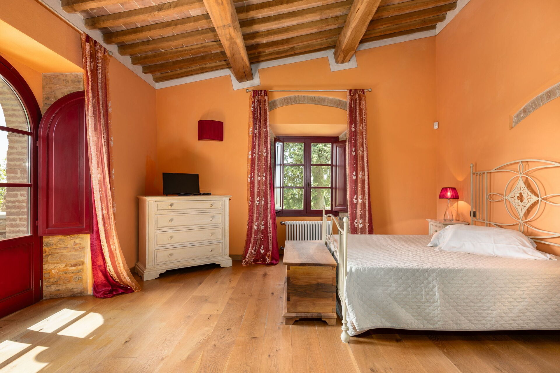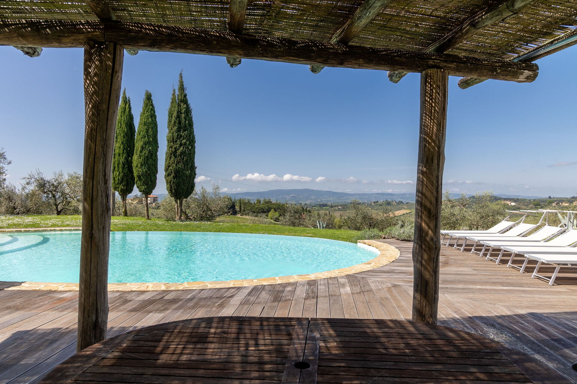 Wonderfull villa with great view to San Gimignano. Hidden on hillside in the middle of olive trees. All rooms with it's own style, everything is clean and new. All rooms with air condition. Renter produces it's own wine with fantastic taste and a grandiose olive oil. The renters crew is very obliging and helpfull from shopping sites to restaurants all over to technical issues. Gorgeous pool with a great view from inside the pool to the surrounding area and San Gimignano. Absolute recommendable for great holidays.
