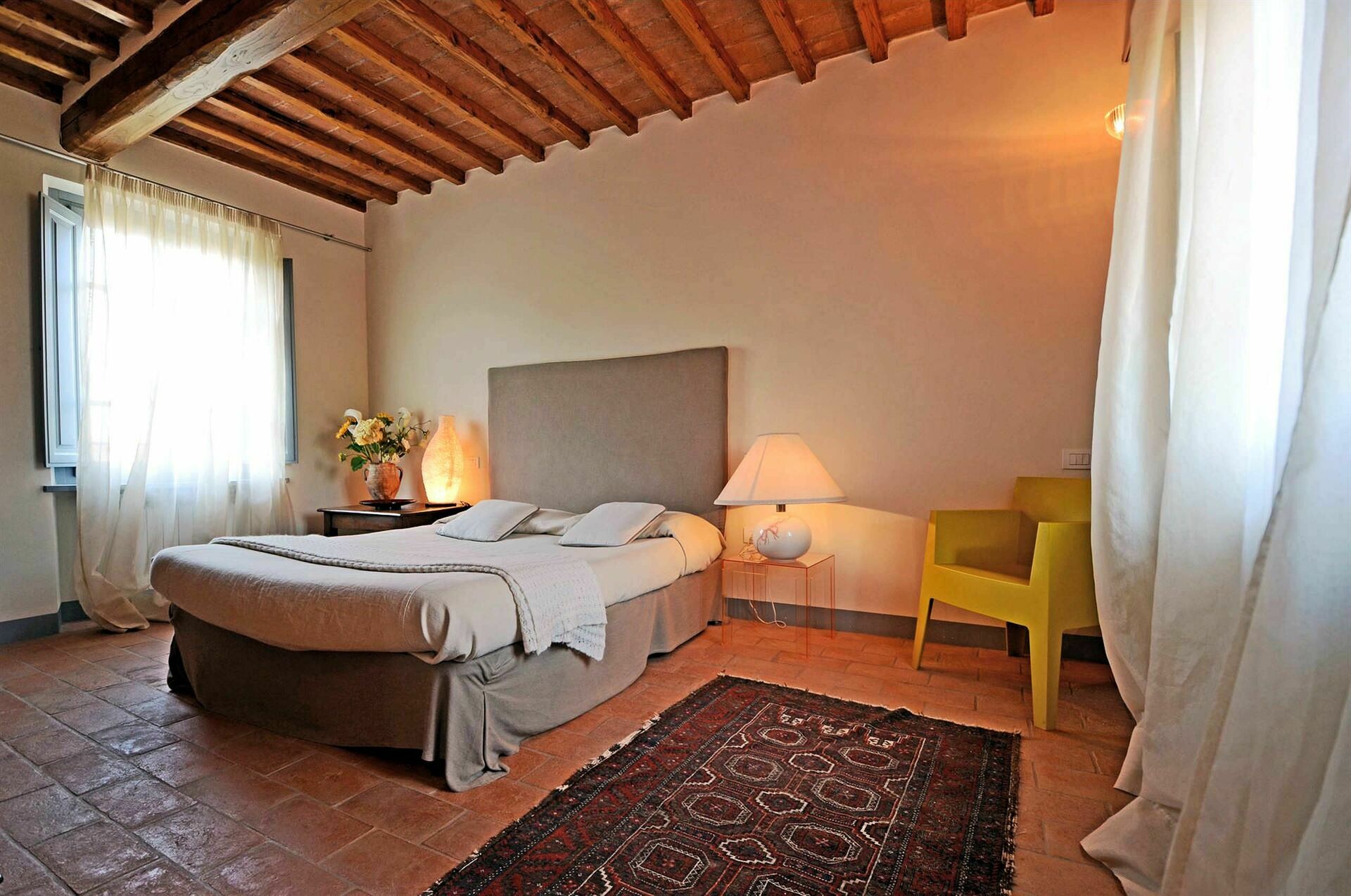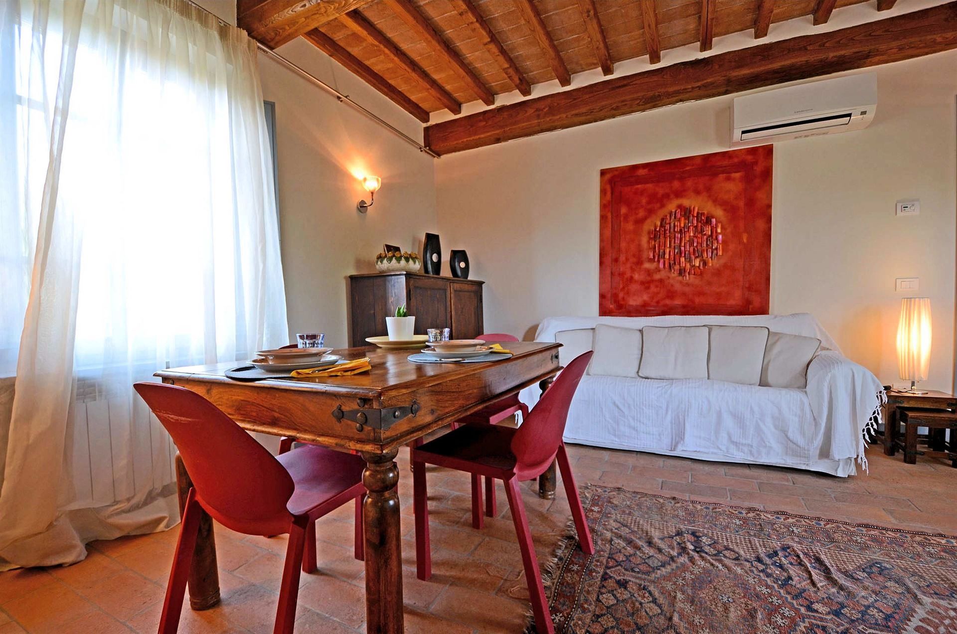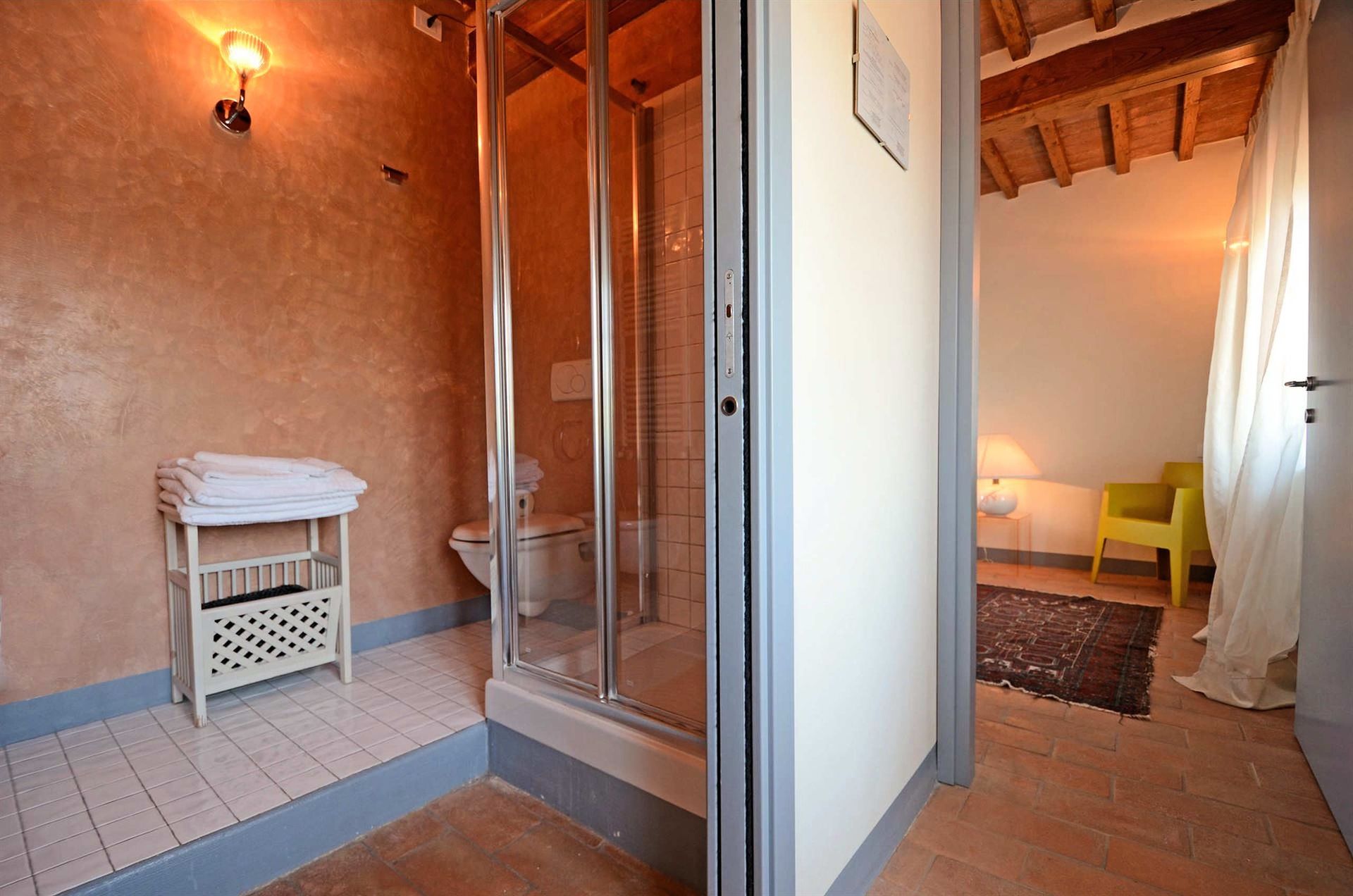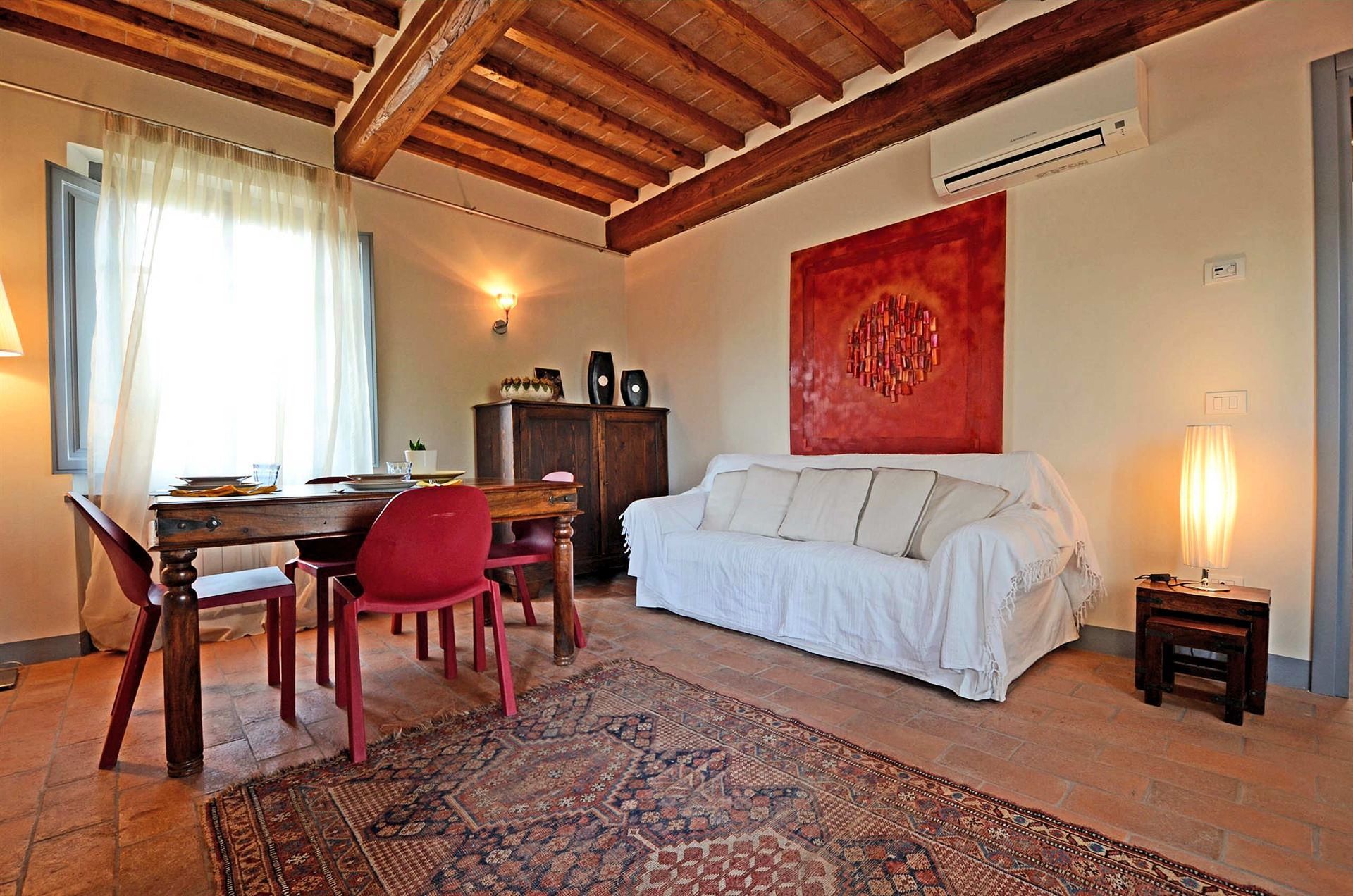 L’appartamento è situato al piano superiore ed è caratterizzato da ampie finestre che oltre a renderlo molto luminoso consentono anche di ammirare le Alpi Apuane. Entrando nel salotto si accede alla cucina. Un corridoio con vista panoramica conduce alle camere, molto spaziose, ciascuna con il proprio bagno ben accessoriato con asciugacapelli. La casa è dotata di tutti i moderni confort: riscaldamento autonomo, aria condizionata indipendente e TV.