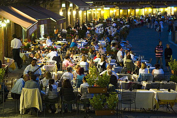 Off we go, following signs to get to Siena and wow what a wonderful place it is. Inside the city reminds me of a old castle of 500 years ago. Narrow cobblestones streets that are shared with vehicles and people alike. Amazing sights and buildings and best of all, the city center (Not really in the center) that is an enormous gathering area for everyone to meet and greet each night. The social area of the town with restaurants on 3 sides and a beautiful tower and church on the 4th wall. Being there is like a dream. Street to street and shop to shop it was awesome and fun to be with new friends and my best friend (Linda) for such an experience. This beats the leaning tower of Pisa and then some.