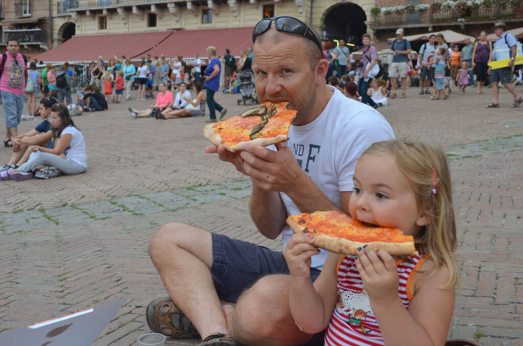 This photo depicts the delights of Sienna in July 2012 - beautiful surroundings, and a welcome rest from sight-seeing. Now it is time for our son-in-law to give our grandchild what she enjoyed most that day - a pizza. She ate the lot and for me it captures the the pleasure in simple things.
