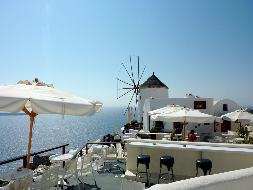 Bar in Oia, Santorini What a magical view! Can you imagine sitting at this bar, looking over the aquamarine waters, sipping a cocktail, without a worry in the world!