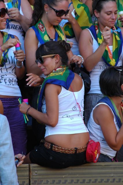 Très belle italienne qui a séduit mon mari photographe ! Nous étions sur la place de Sienne , la plaza del Campo, un jour avant le Palio, les cavaliers des Contrades se retrouvent tous pour un ultime entrainement. Cette italienne soutient le quartier"Bruco": le quartier de la Chenille.