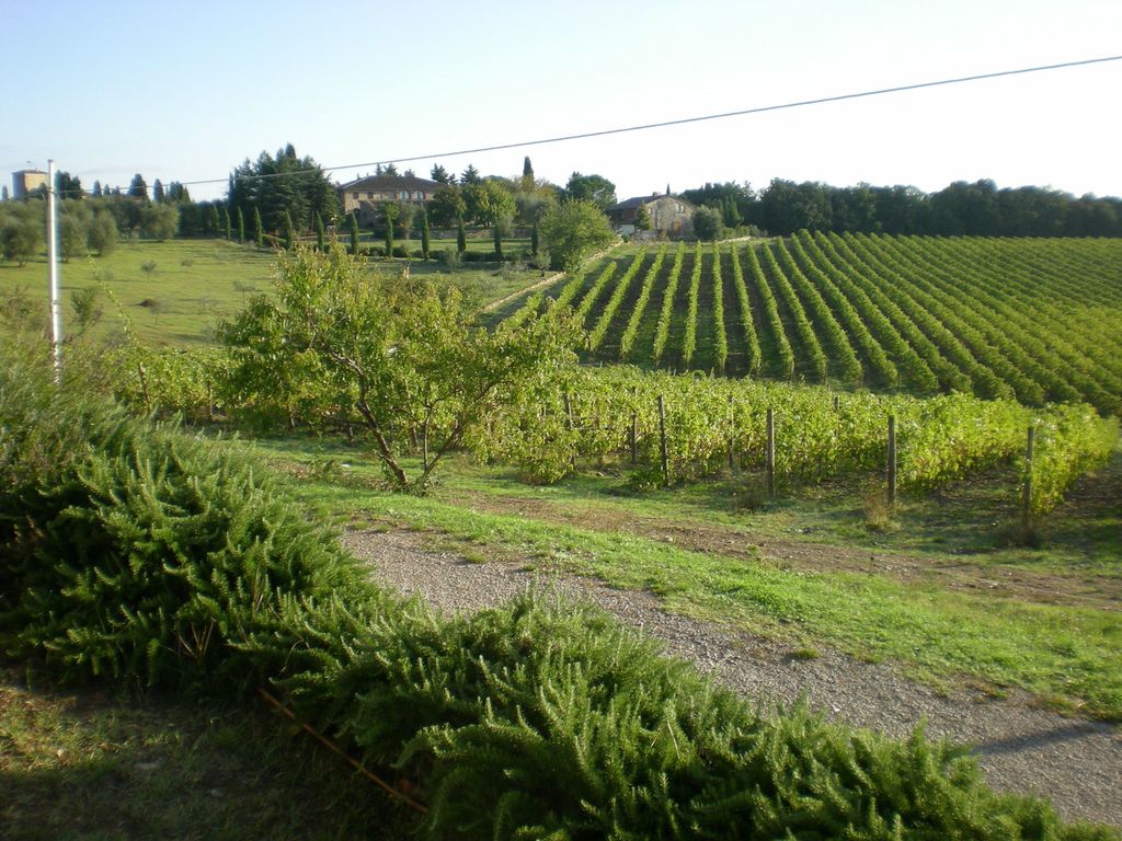 Enjoying the beautiful Tuscany sunset and the view over the vineyards and olive fields from the house.