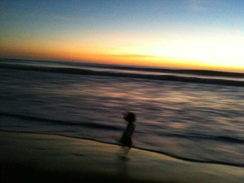 7-year old Abby running on the beach at Aptos, California trying to catch the sun before it sets.