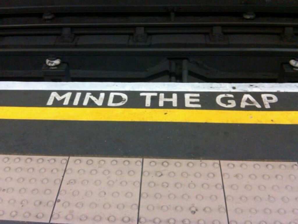 Mind the Gap. I staple sign in the London Underground. Imagine hearing the sound of metal against metal as you wait for your train.
