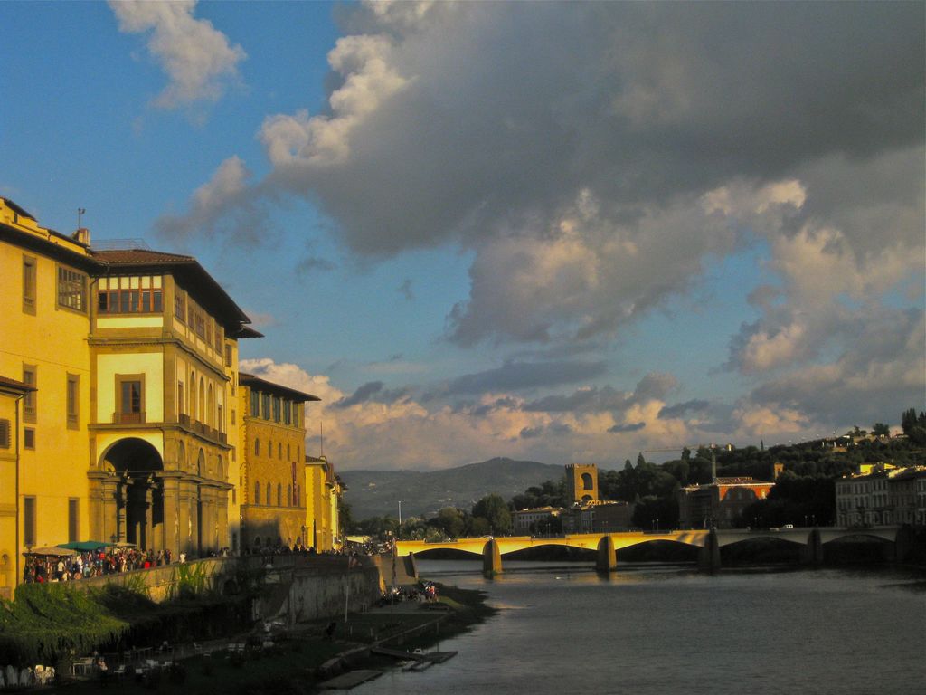 Shot from near-by the Castel Sant'Angelo along the Aron River in Rome during sunset.
