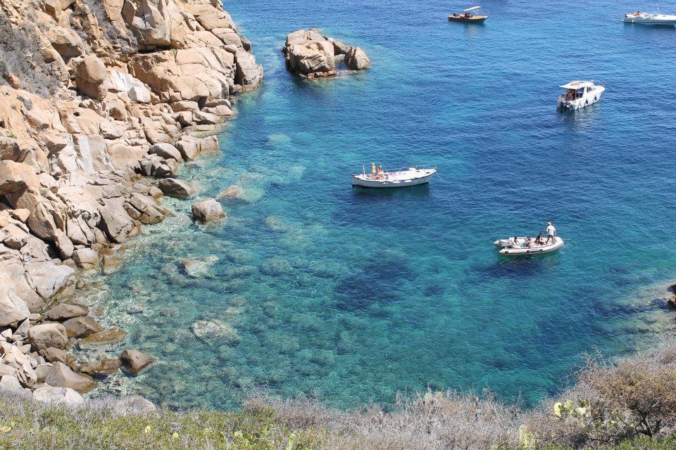 Foto scattata ad agosto 2012 presso l'Isola del Giglio spiaggia le Cannele. In questa foto notiamo il riflesso delle barche sul fondo, acqua cristallina ed una fantastica scogliera sulla sinistra che si va ad unire con il mare.