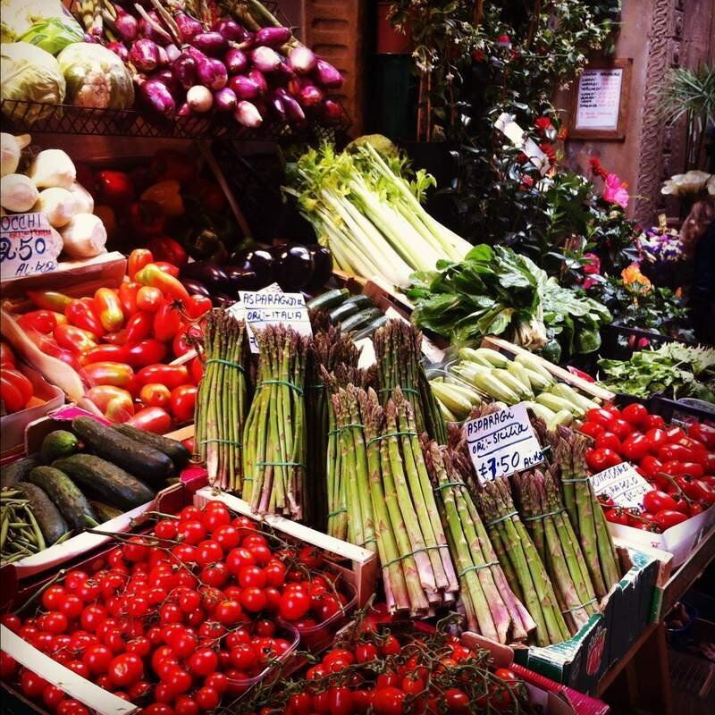 Fresh vegetables at food market in Bologna, Italy.