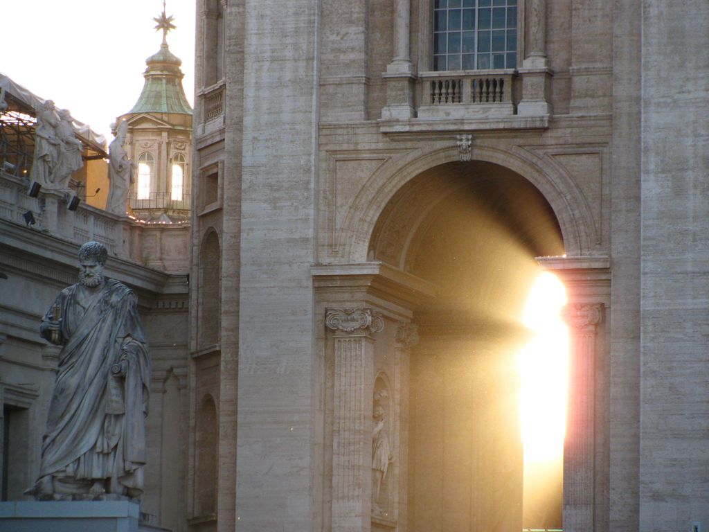 I captured a quick shot just as the sun was going down behind St Peter's Basilica, illuminating the Saint himself through the archway.