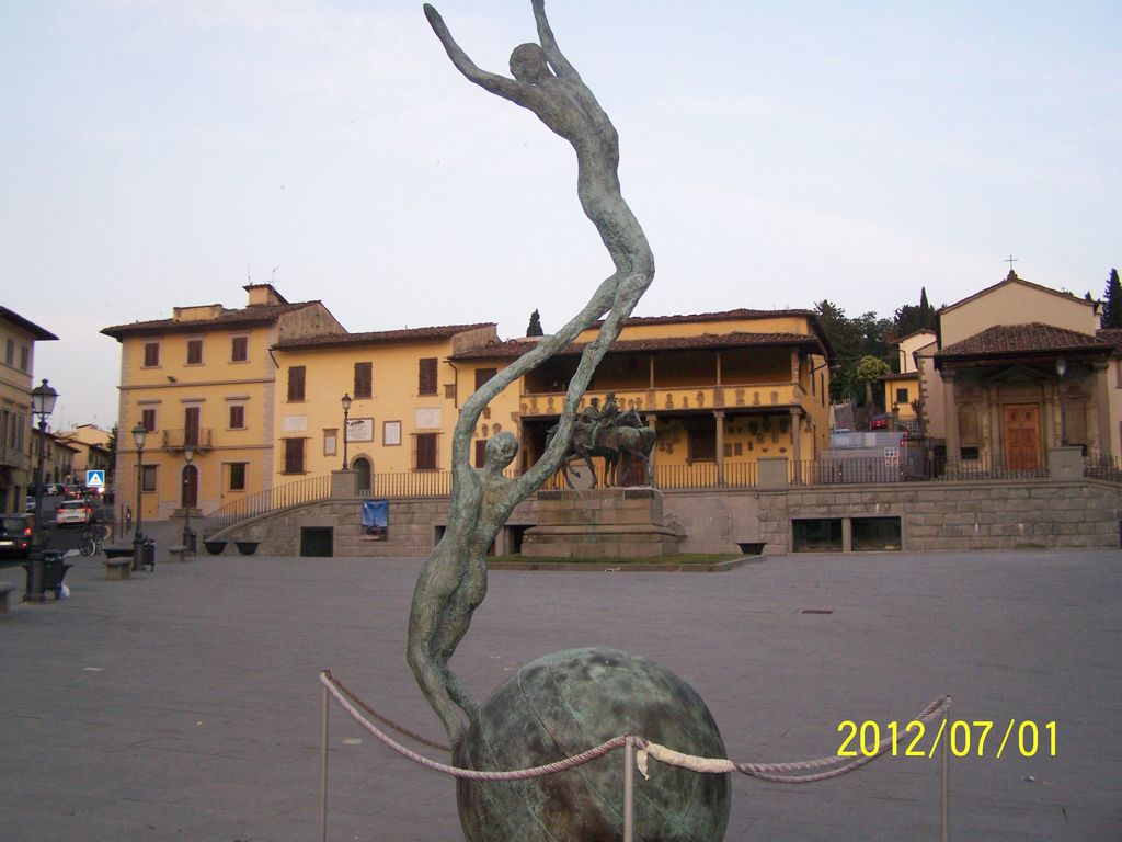 This is a photograph of a town square in Fiesole. The view of Florence is breathtaking!
