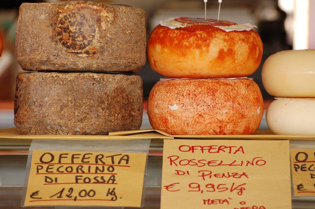 Taken in the Wednesday market in Montepulciano, this shot epitomizes the beauty of the Italian cheese and their displays in the market.