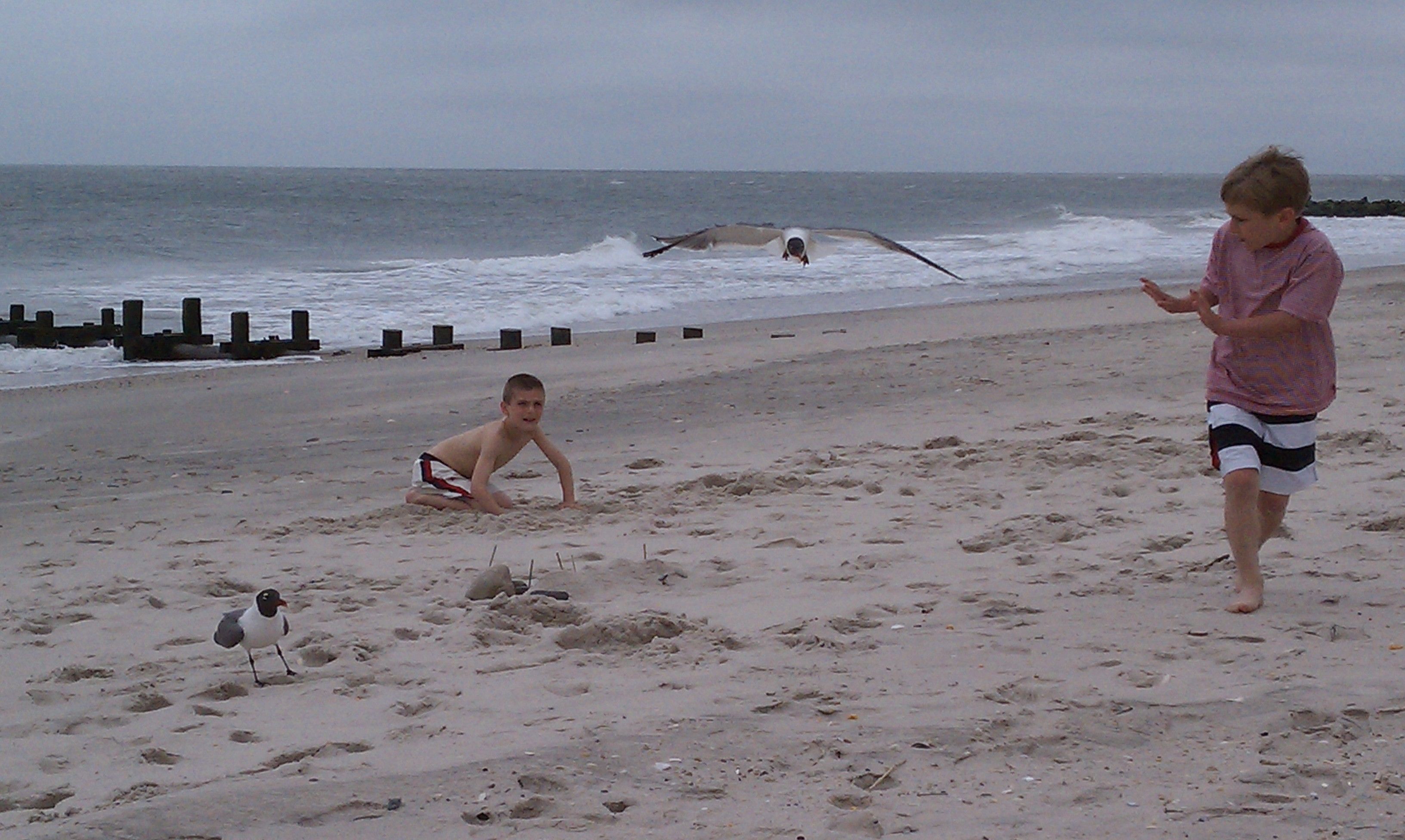 With my nephews, Kenny and Dylan, at Cape May NJ beach. A seagull wanted another cracker.