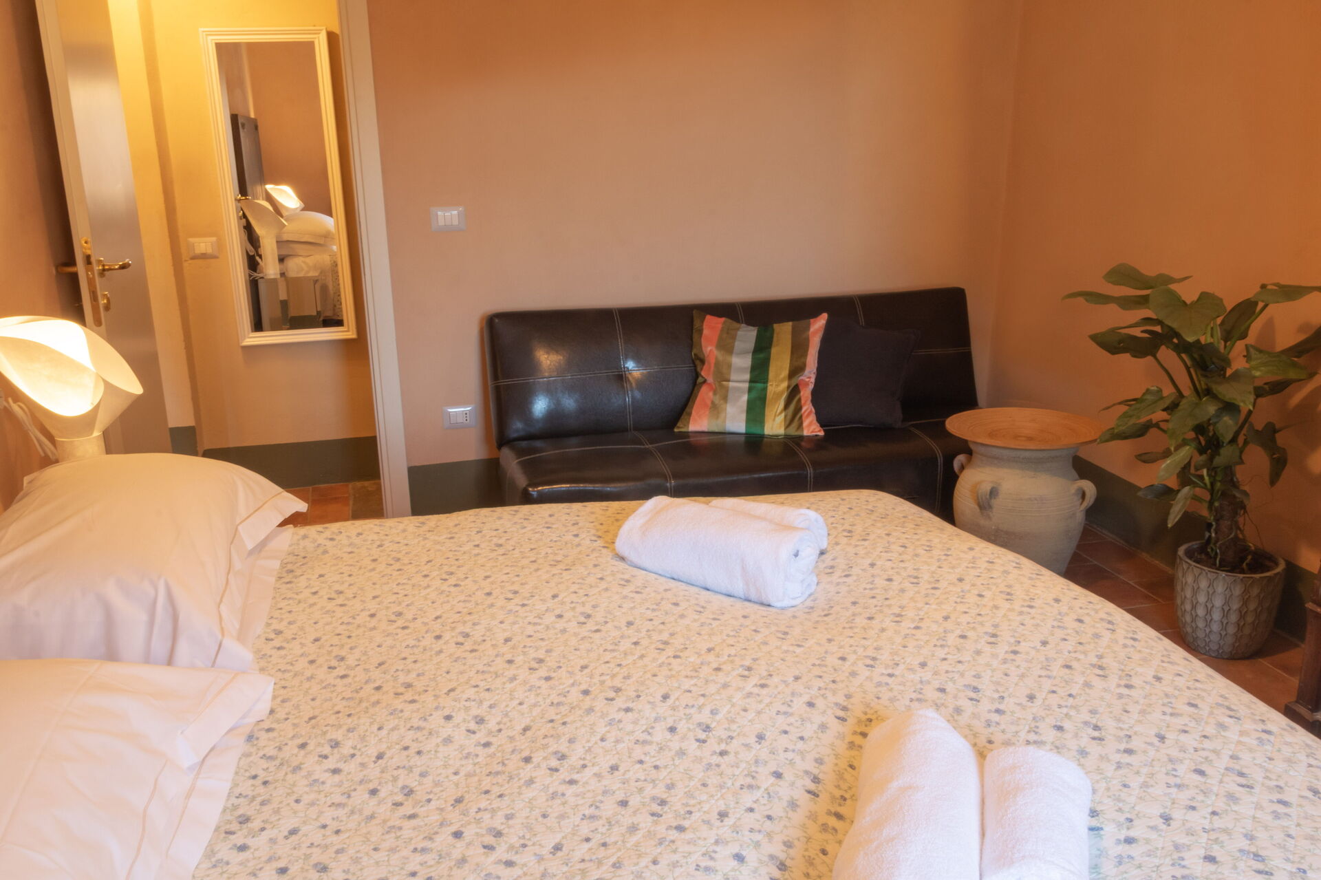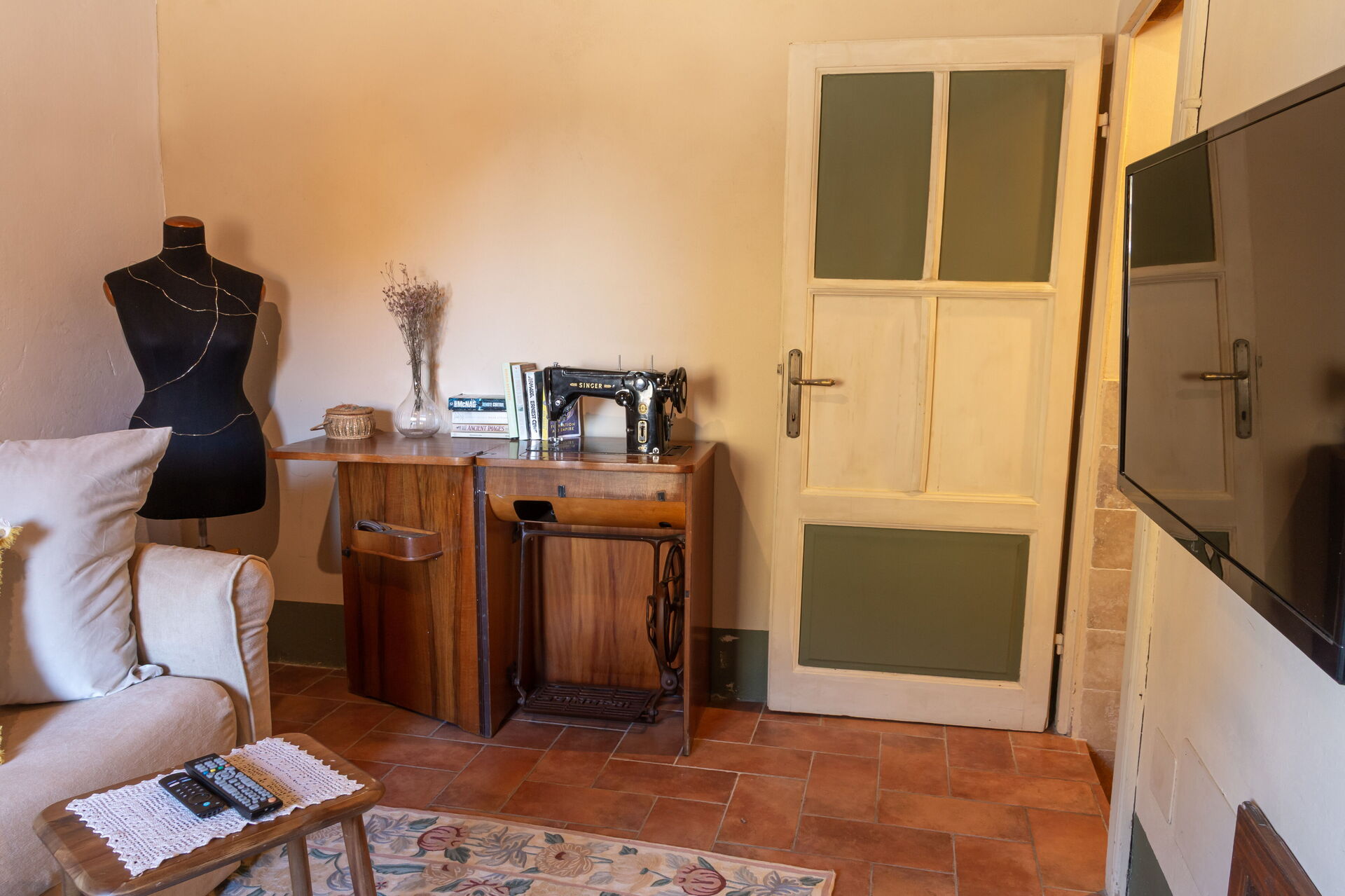 Opposite the main entrance an old stone staircase takes you to the second floor with two separate rooms, a double bedroom and a bedroom with 2 single beds.