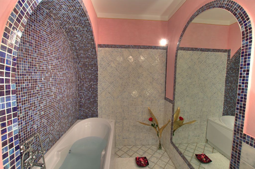 Bedroom + Ensuite Bathroom 1: double bed, WIFI internet, air conditioning, satellite tv, whirlpool bathtub, basin, toilet, bidet.