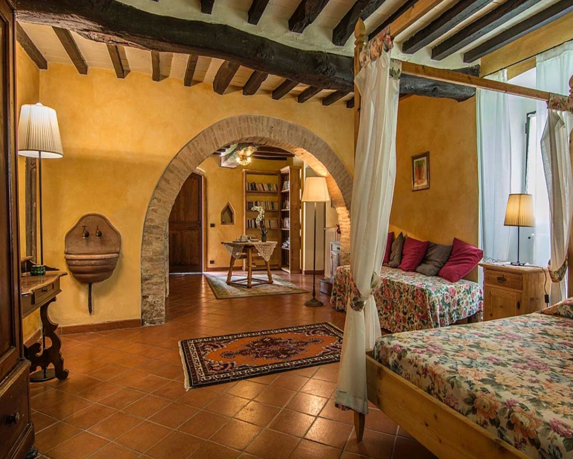 Vacation rental Villa Flora is a lovely stone building (470 sq m) that includes private pool, air conditioning and hot tub. The property can accommodate up to 14 guests comfortably in seven bedrooms with seven bathrooms. Conveniently located 2 km (1 mi) from Grezzano, Italy and only 41 km (25 mi) from Florence. There is a golf course nearby if you'd like to get in a round or two while on holiday.