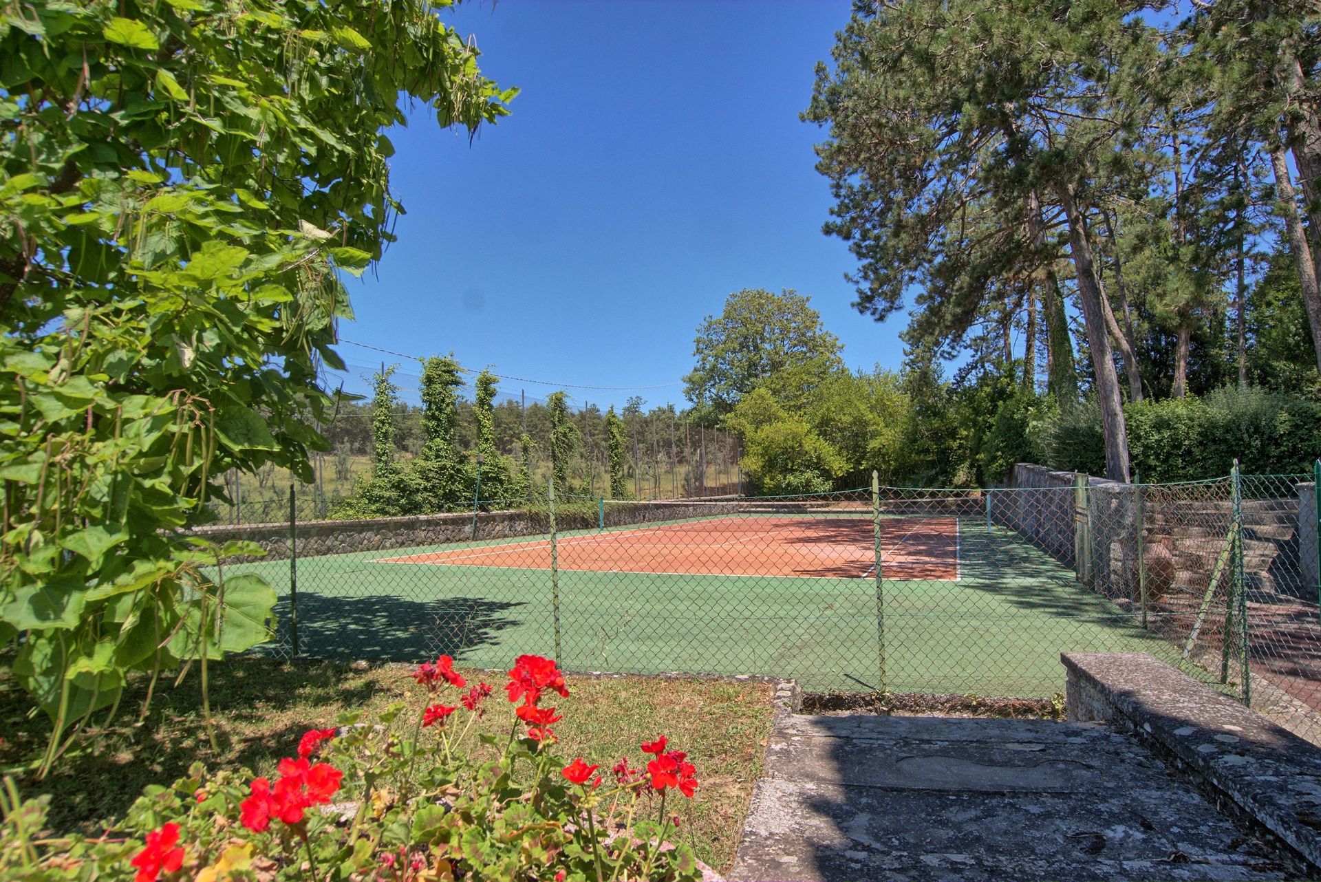 Garden (5000 m2): swimming pool (length: 15m, width: 12m, max. depth: 3m, min. depth: 1.5m, fenced), WIFI internet, barbecue, al fresco dining, dining table (people: 16), terrace furniture, 13 sunbeds, fenced, enclosed property, tennis court.