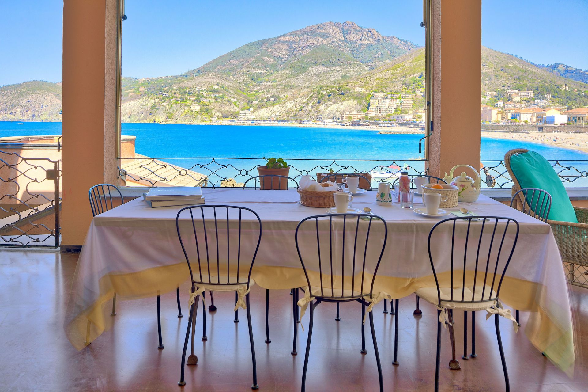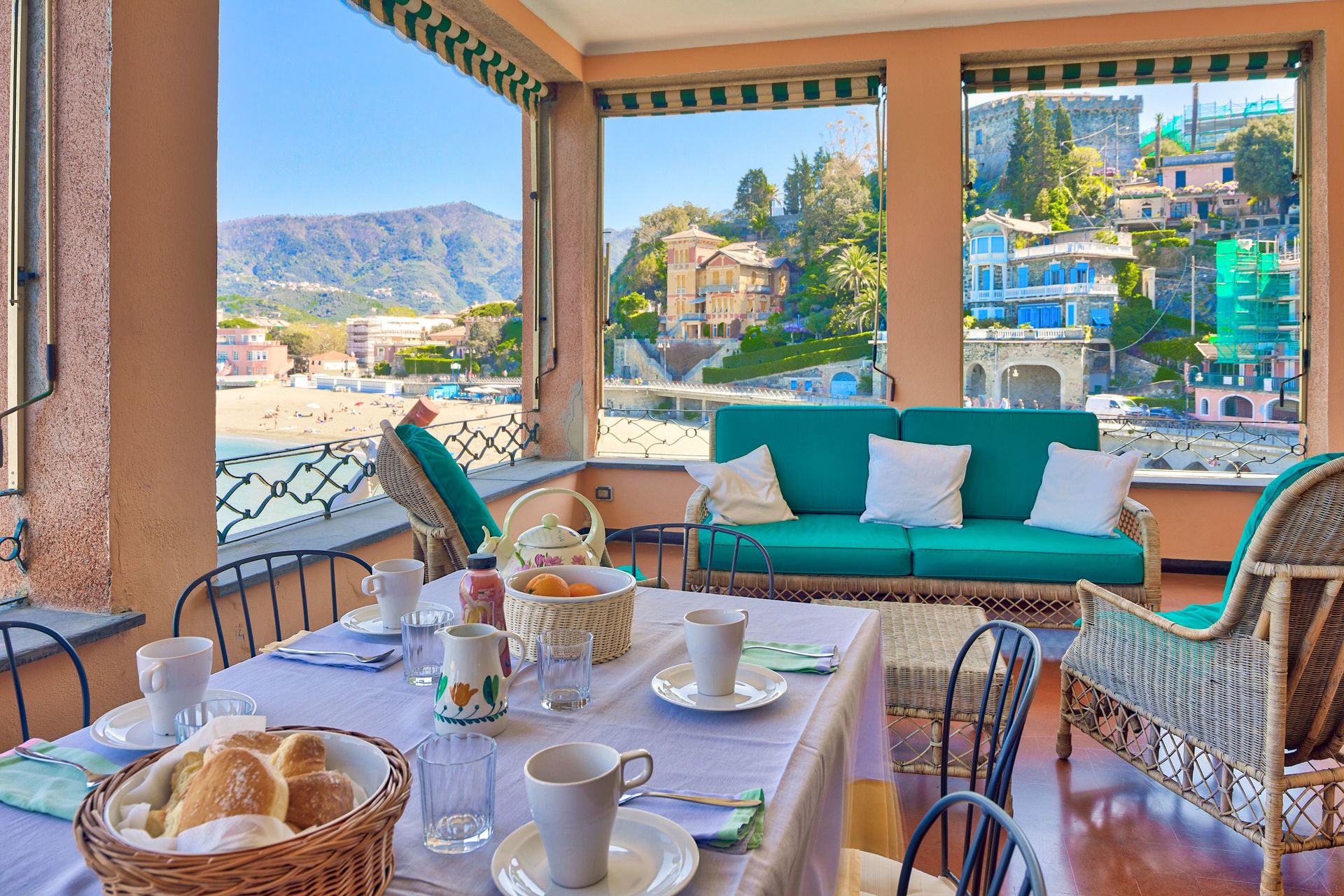 “Villa La Pietra – Levanto” is a building of about 350 m² on two floors, plus a turret. It has 7 double bedrooms and 7 bathrooms. It has 4 terraces, from which you can enjoy an unique panorama of the whole Gulf of Levanto, while relaxing on the sunbeds. Equipped kitchen and a laundry. Lounge with dining room on the first floor, with a stunning sea view terrace. Another living room with satellite TV on the ground floor.