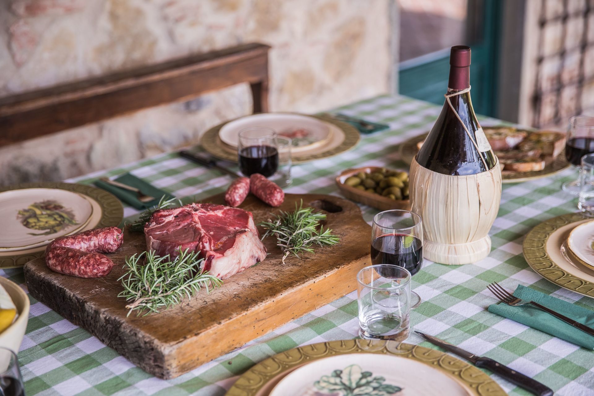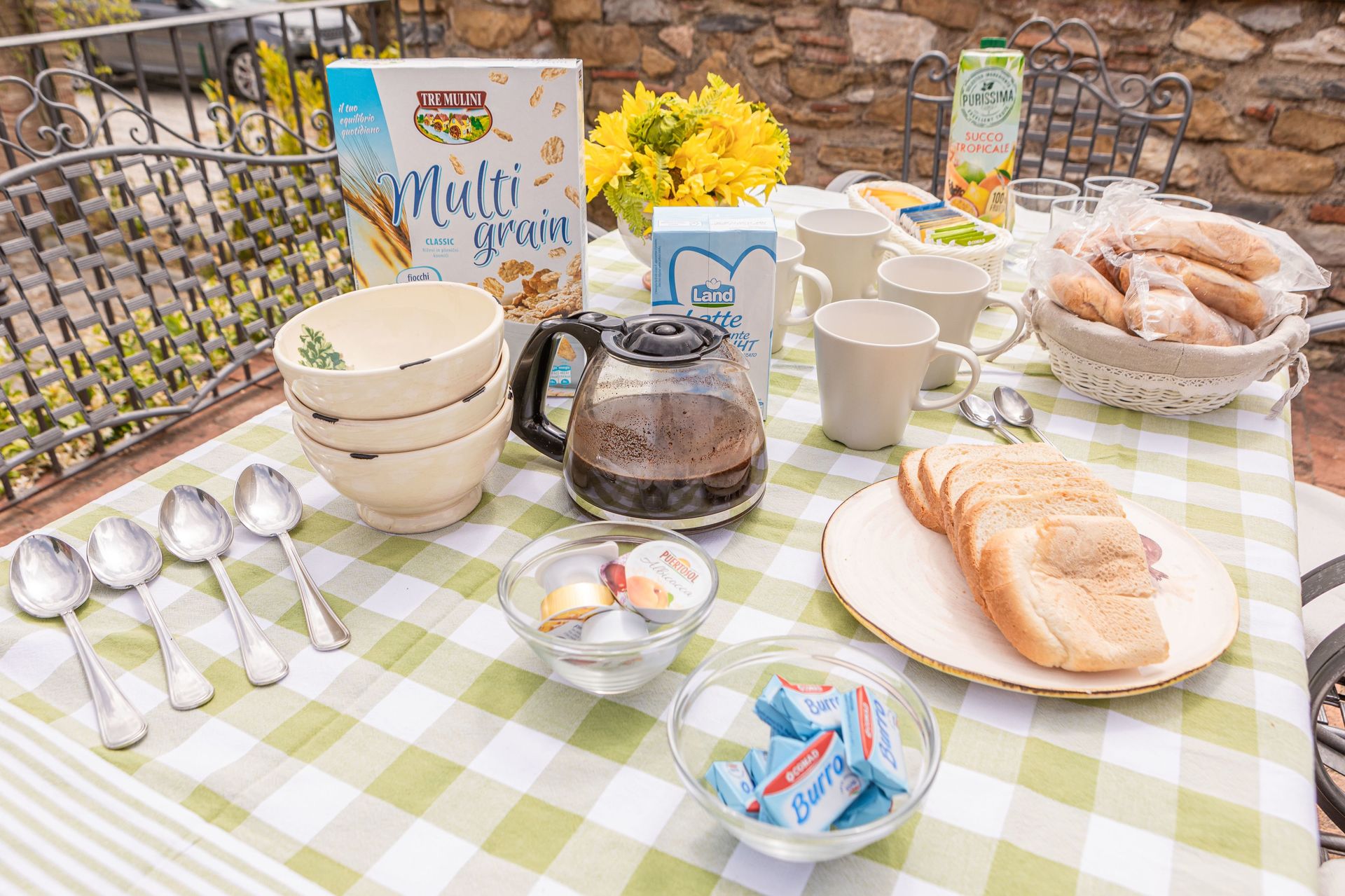 Everything you need for dinner on the evening of the arrival: homemade pasta, parmesan, bread and salad, Chianti wine and water