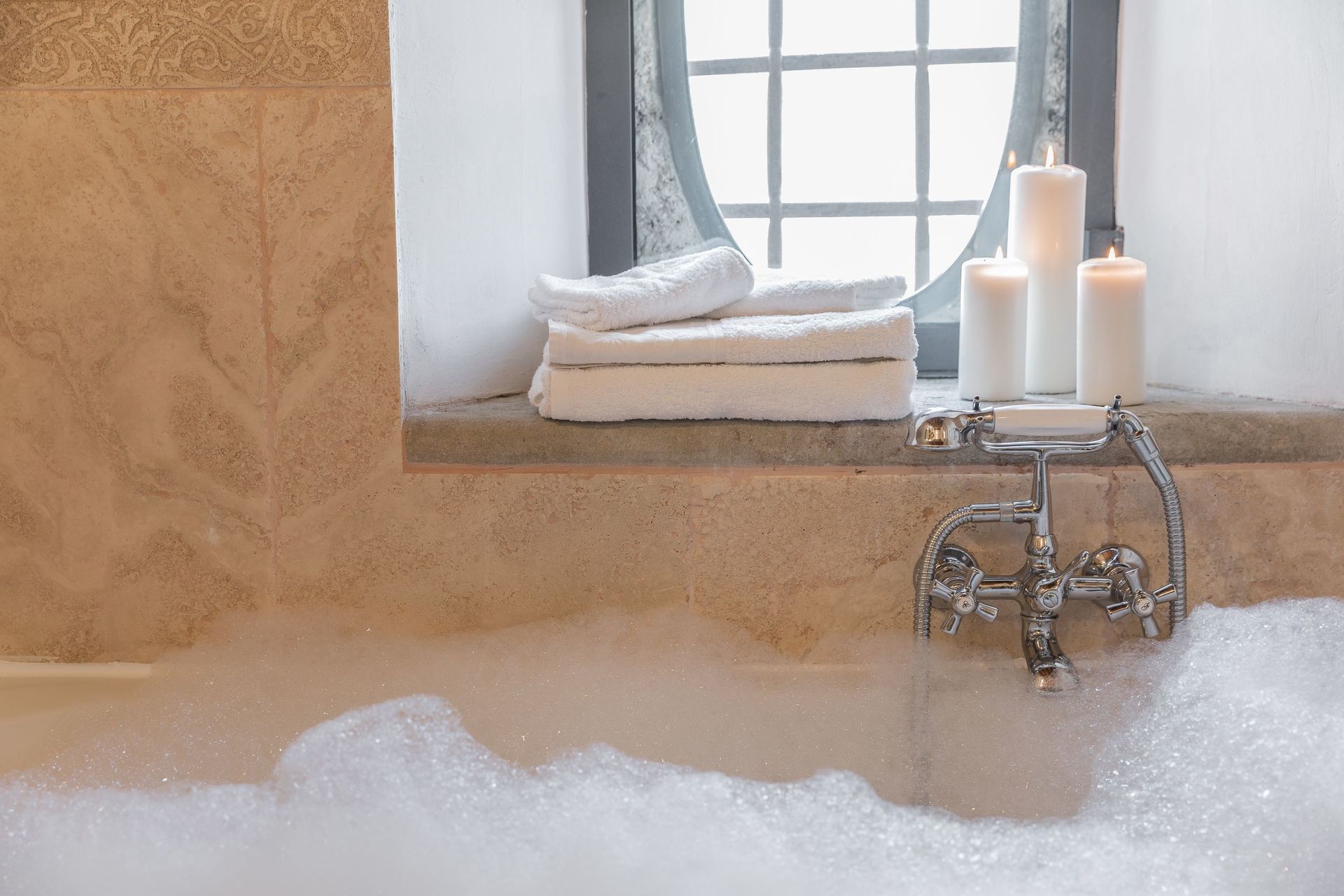 Bedroom + Ensuite Bathroom: double bed, WIFI internet, air conditioning, basin, toilet, bidet, bathtub, shower.