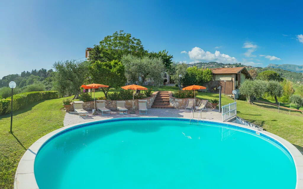 Villa Le Casette is a recently renovated rustic villa located in Piano di Conca, Massarosa, Italy. It offers a peaceful vacation rental with stunning panoramic views of the Versilia coast. The detached house is situated on a large private land that includes a flower garden, olive grove, orchard, and a swimming pool, providing an ideal setting for your holiday.
