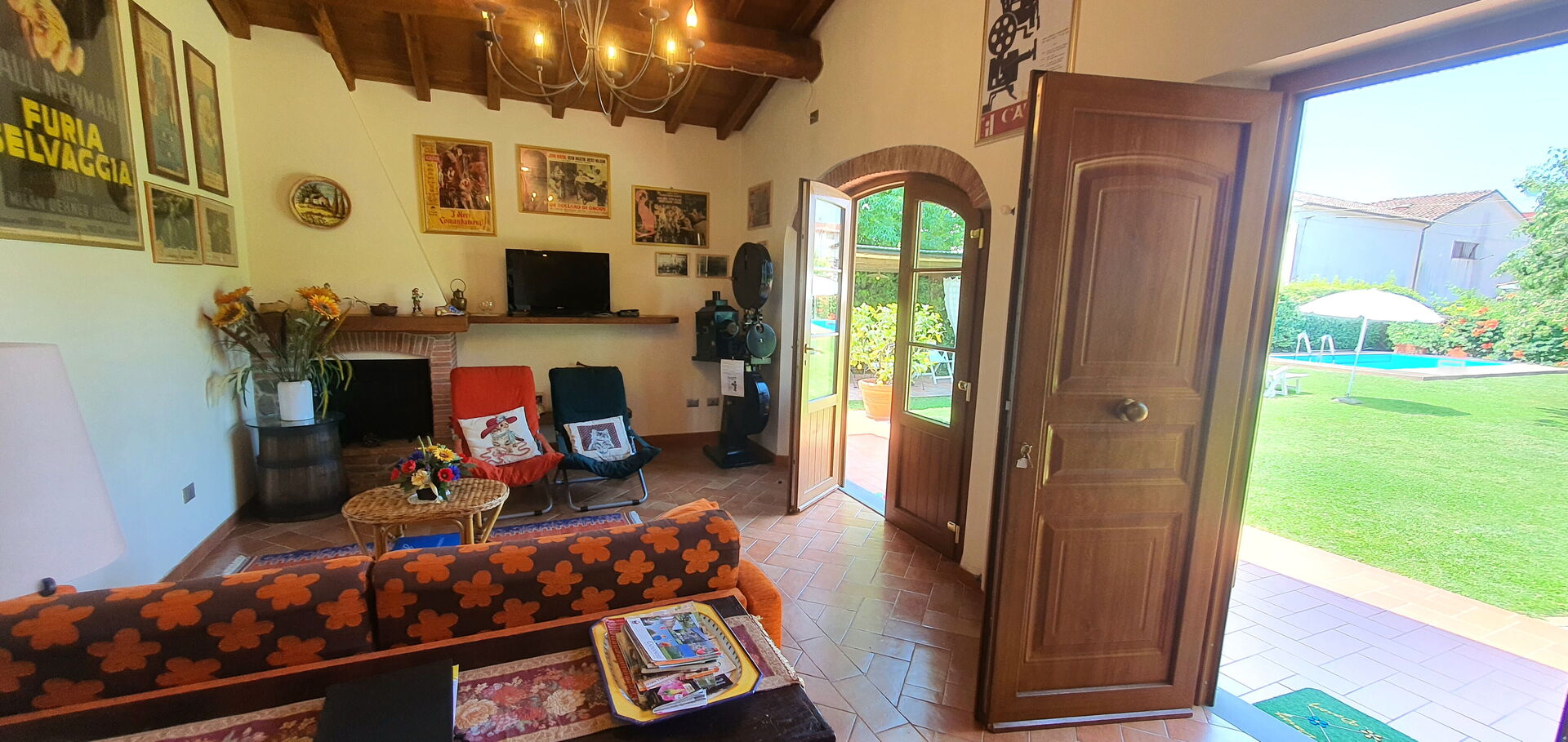 Living room: fireplace, sofa bed double, air conditioning, satellite tv, exit to the garden.