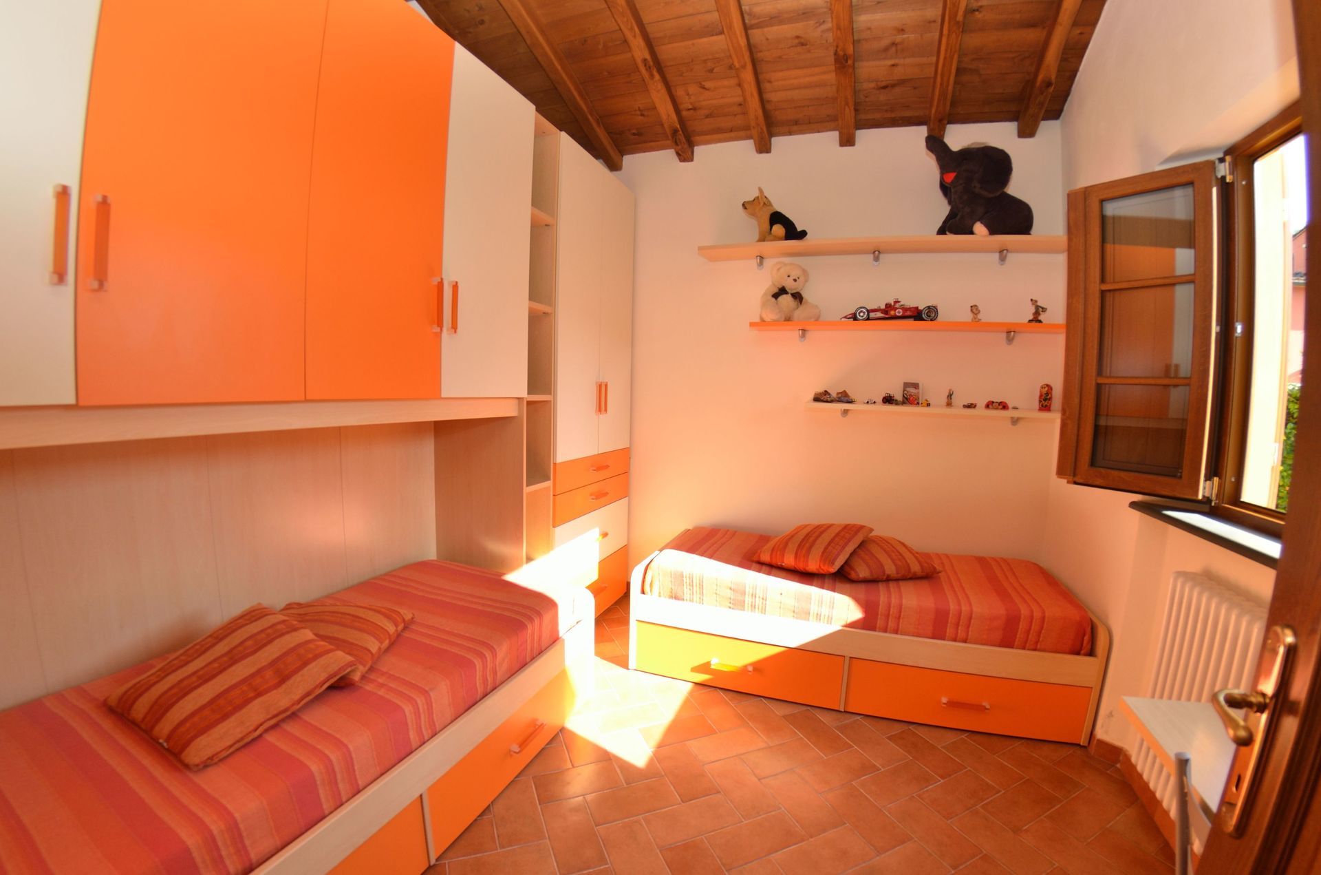 Bedroom 2: two single beds, air conditioning.