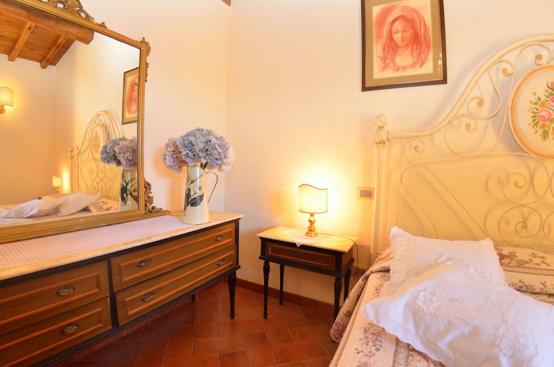 After arriving you’ll find a nice clean well-maintained property ideal for a peaceful vacation in Tuscany. Regardless of how you spend your days - sightseeing, visiting museums, shopping or just driving in the countryside, when you arrive home you can unwind with your family and friends at the pool for a perfect ending to another day in Tuscany. There is a kitchen including coffee machine, microwave, stove and refrigerator, as well as, plenty of tableware and cutlery for up to six people. If you prefer to dine 'al fresco', there is a fully furnished veranda where you can enjoy the weather while dining outdoors.