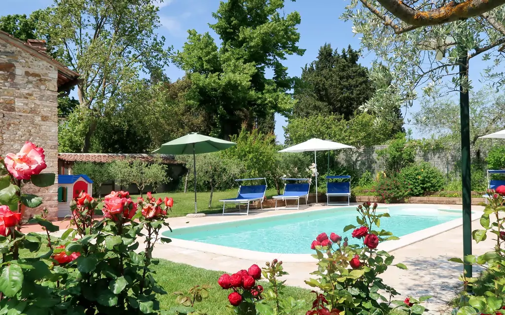 "Ambrogetta" is a charming 1800-built cottage located just 1 km from the center of San Casciano In Val Di Pesa, Italy, offering a peaceful and tranquil vacation rental experience with easy access to local amenities. The property boasts a lovely swimming pool (8 x 4 meters, 120 cm deep) available from May 1 to October 22, an outdoor shower, a vast 20,000 square meter garden with a lawn and trees, parking for two cars, and internet WiFi.