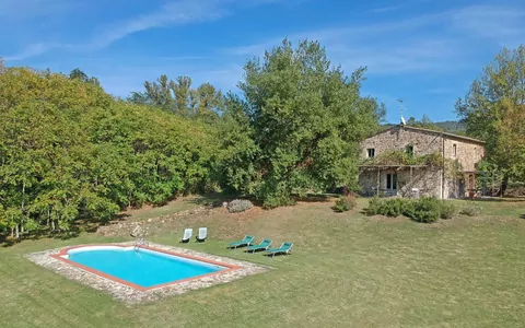 The villa has welcoming interiors furnished in typical rural style and offers 3 bedrooms and 3 bathrooms to host up to 6 guests. Outside, a large garden is at guests' disposal with its equipped dining area and a beautiful panoramic swimming pool, perfect for spending the hottest summer days relaxing under the Tuscan sun, surrounded by a breathtaking landscape. The property is surrounded by nature and offers absolute tranquility. A small river originating from the thermal spring runs a few hundred metres from the garden.