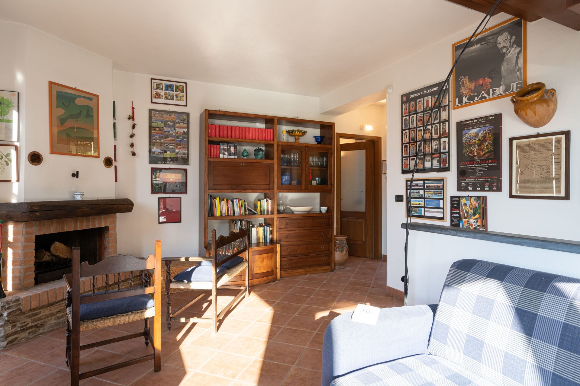 Living room: sofa, fireplace.