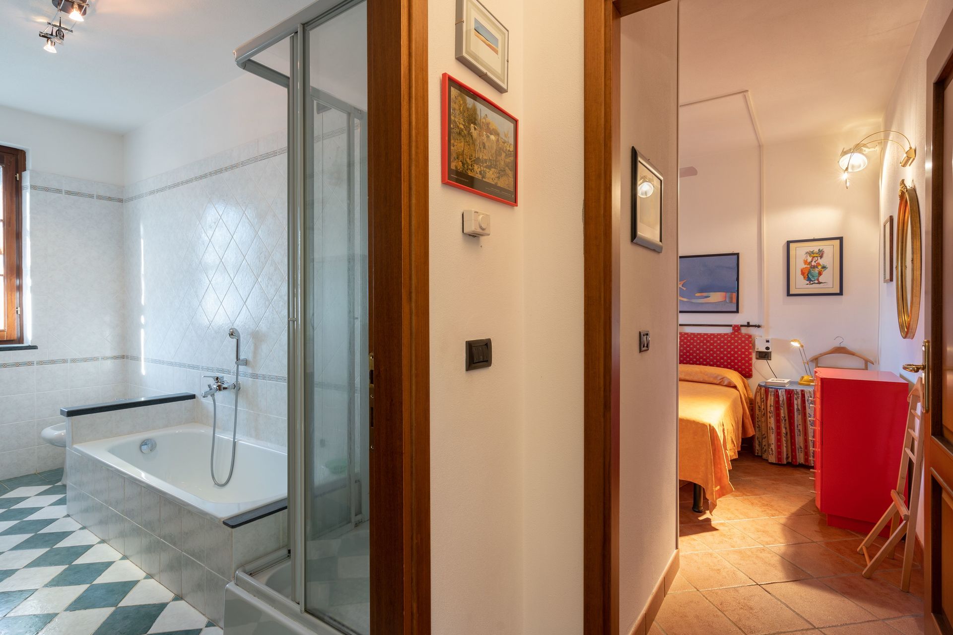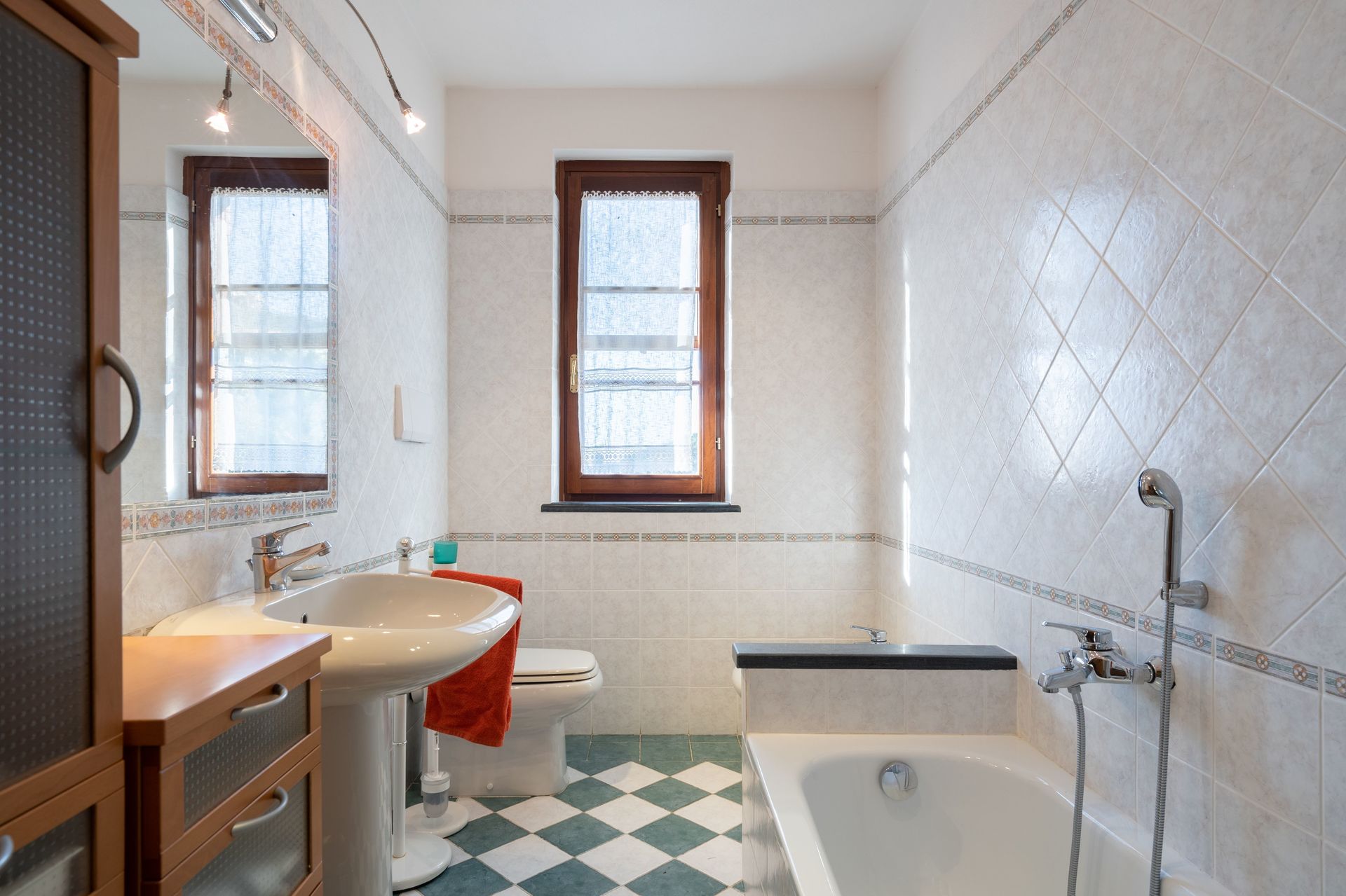 Bathroom: basin, toilet, bidet, bathtub, shower.