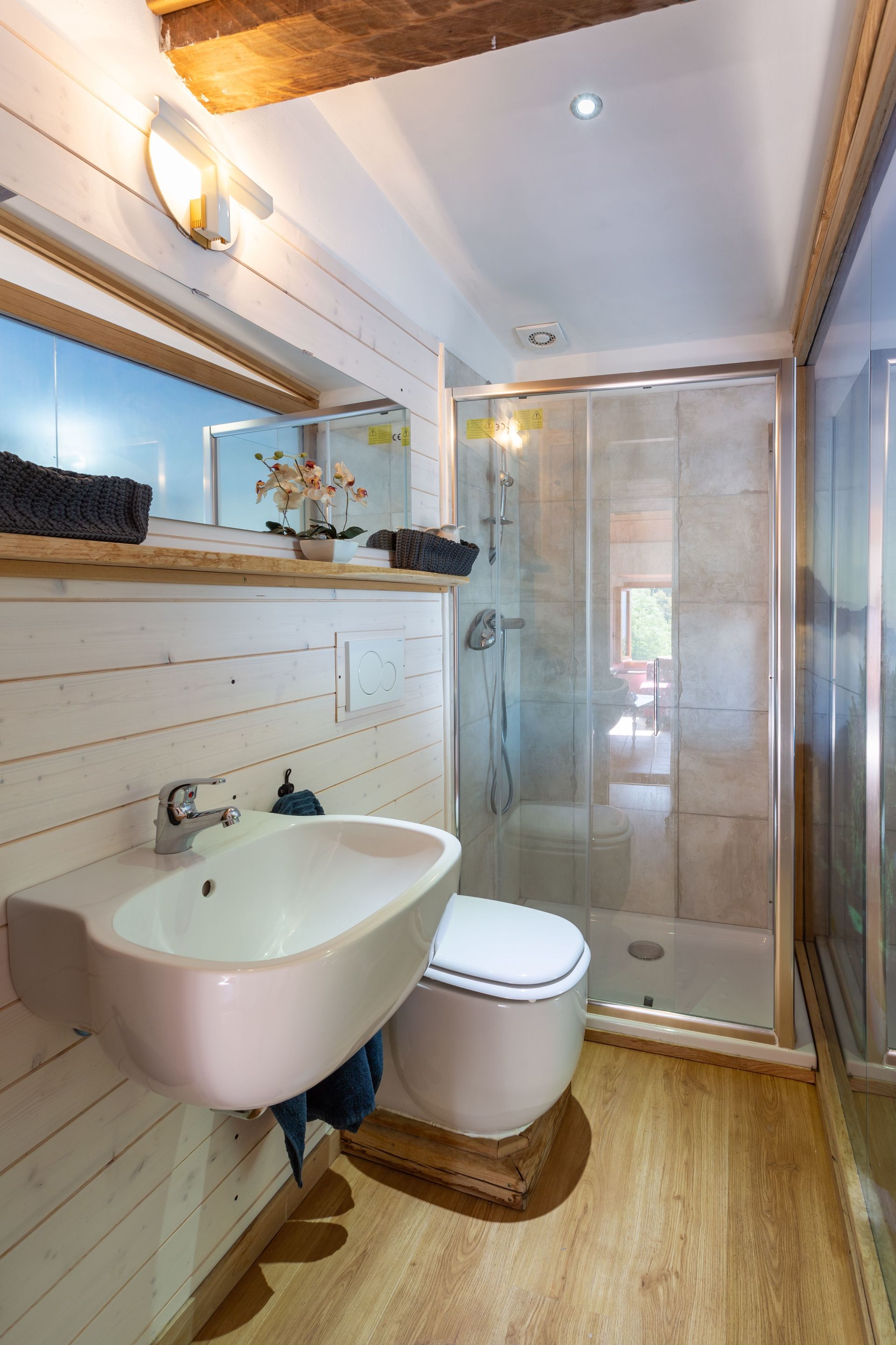Unfortunately, the sauna only had a maximum of 55 degrees. There was a pallets heater on each floor and also a radiant heater in each room.
