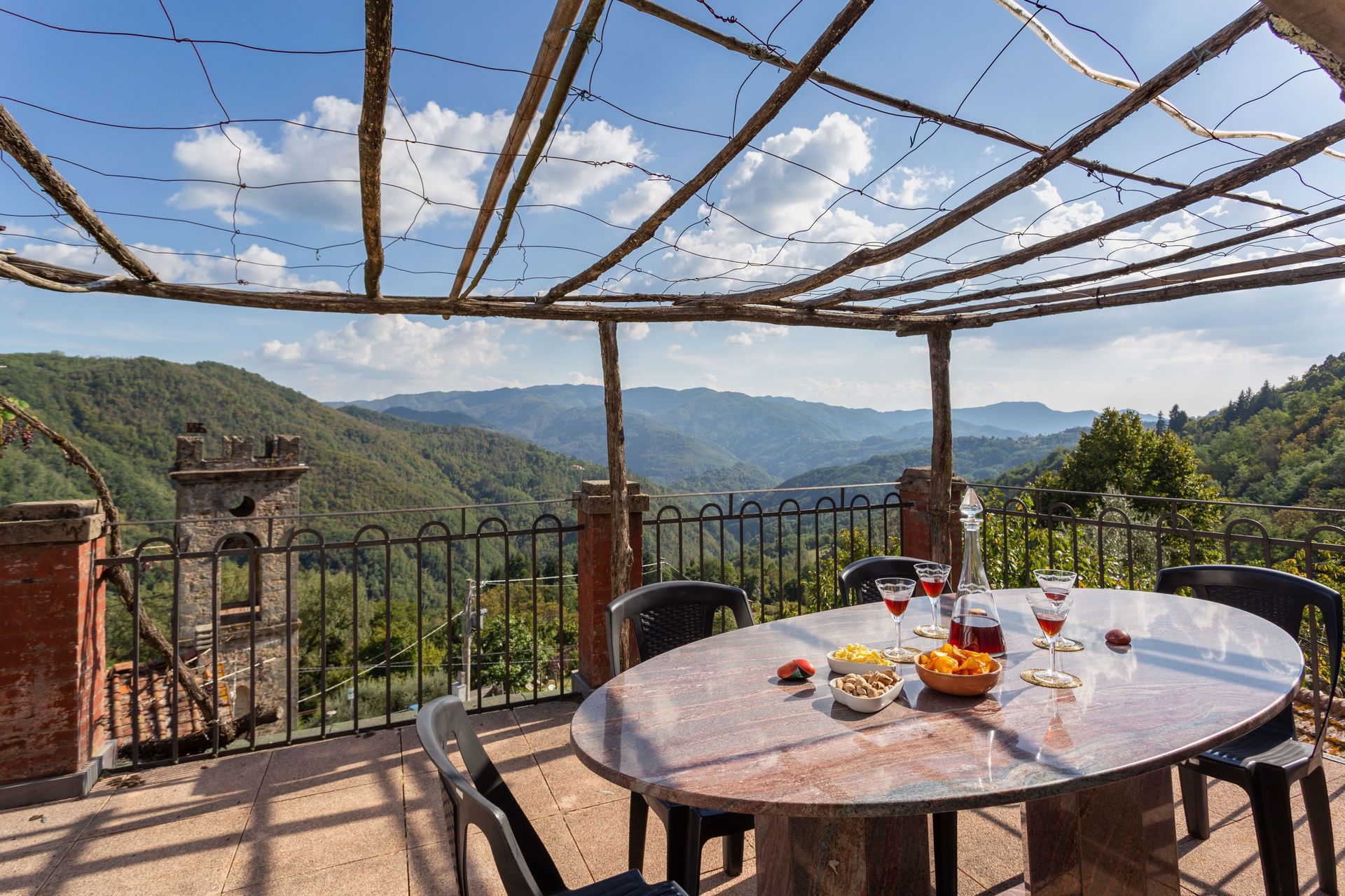 Traumhafte Aussicht, super netter Kontakt mit der Host. Sie war sehr hilfsbereit. Unterkunft sauber und gut ausgestattet. Umgeben von wunderschöner Natur lässt sich das ein oder andere Insekt im Haus nicht vermeiden. Insgesamt ein wenig in die Jahre gekommen aber alles funktionsfähig. Wasserdruck doch deutlich eingeschränkt, in der Sauna-Dusche war der Wasserdruck wunderbar. Sauna wurde bei uns leider nicht wärmer als 65°C. Kirche wird nicht geläutet, sodass man wunderbare Ruhe hat. Bei Google Maps wird einem der kürzere Weg über eine winzige Straße mit Begrenzung von 1,5t vorgeschlagen- der Weg ist nicht zu empfehlen! Extrem schmal! Unbedingt den längeren über Monte Di Villa nehmen!