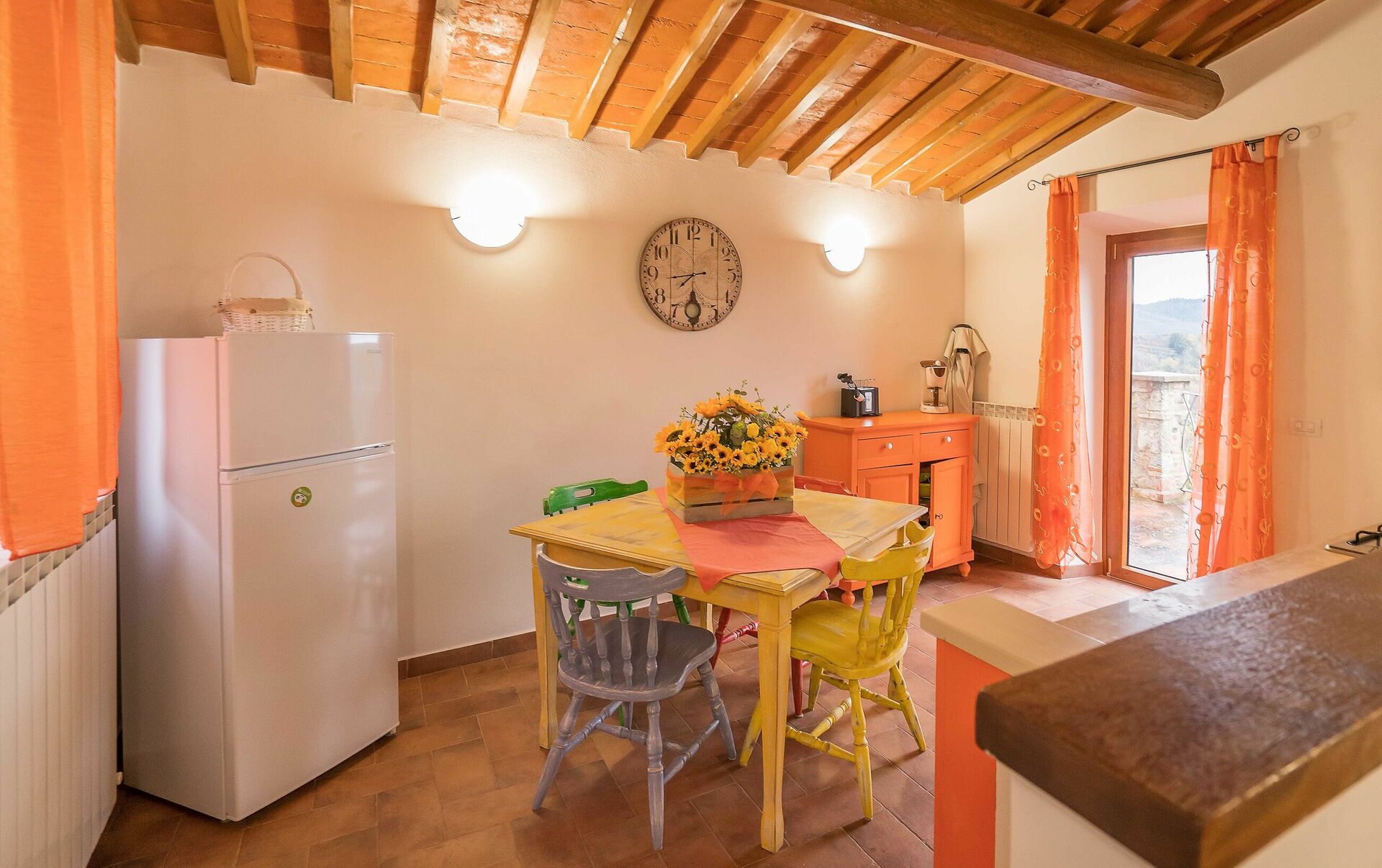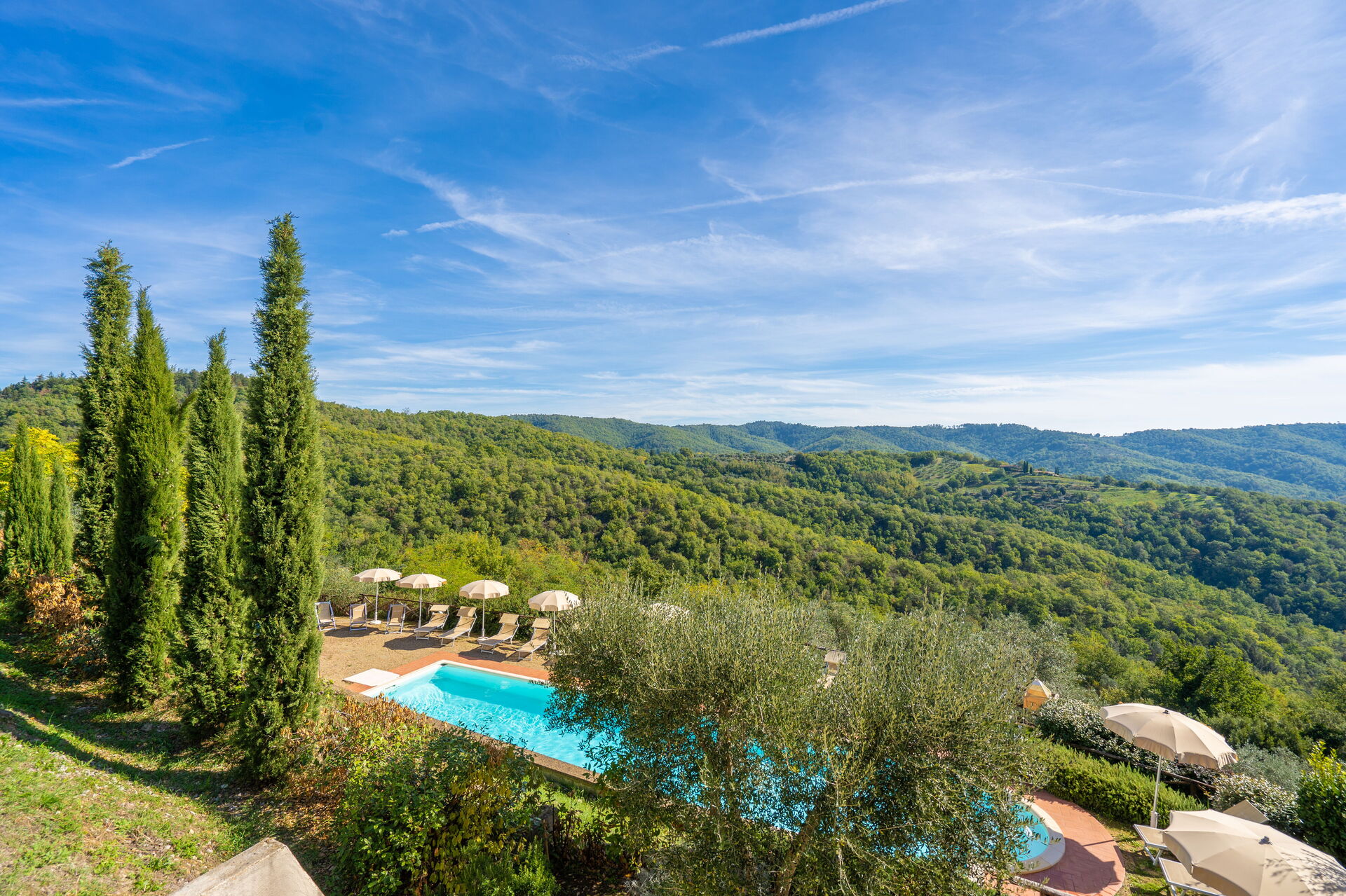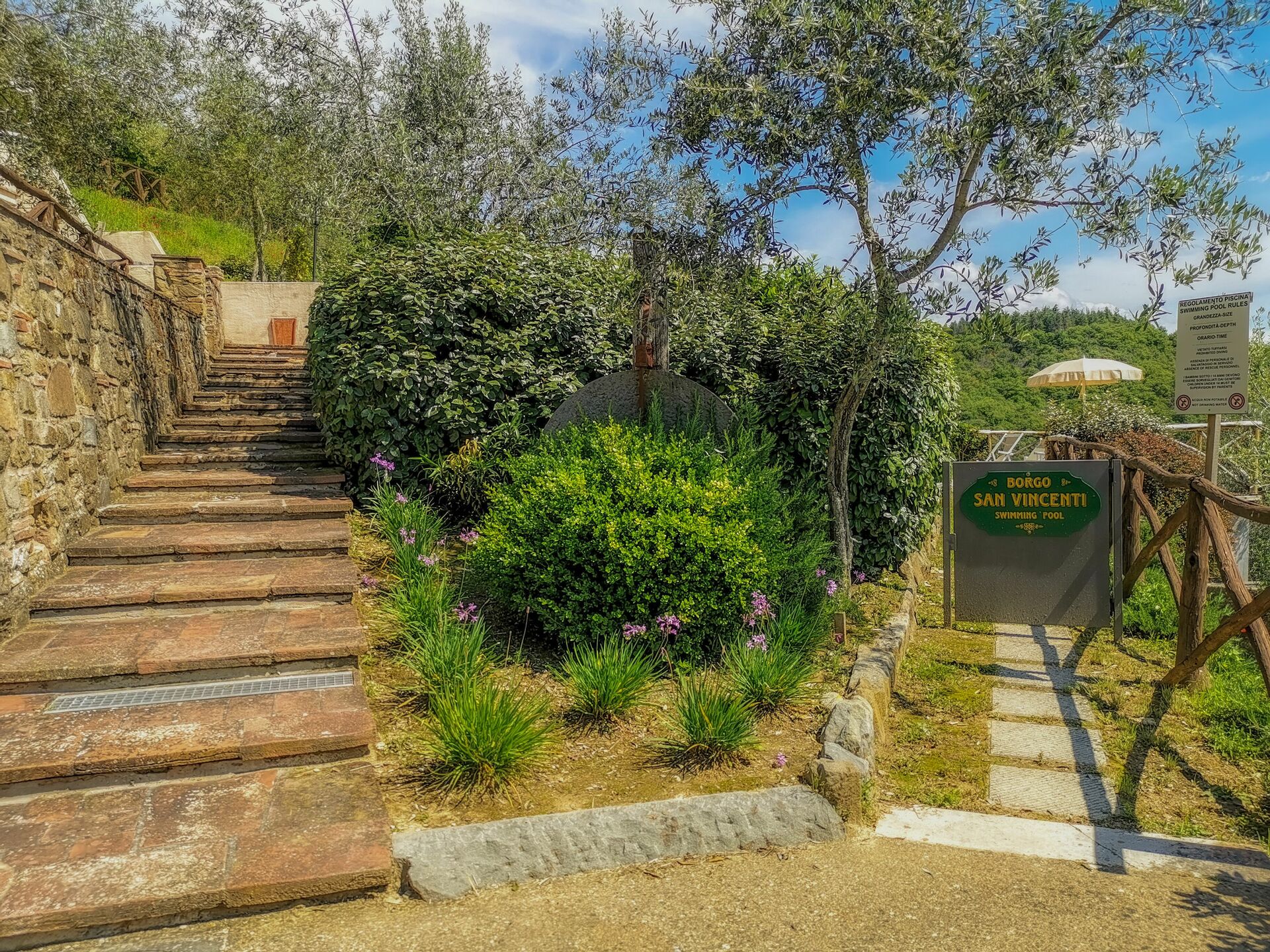 Upon arrival at Borgo San Vincenti you’ll find a beautiful clean well-maintained property with views of the hills ideal for a splendid holiday in Tuscany. For your enjoyment you will find a private pool where you can relax while enjoying a nice cold beverage after a busy day of sightseeing. Sharing a meal with friends and family is a huge part of the Tuscan culture. Take advantage of the well-equipped kitchen to prepare meals using local produce while on your holiday. The kitchen includes coffee machine, microwave, toaster and refrigerator, as well as, plenty of tableware and cutlery for up to 22 people. Dine 'al fresco' like a real Tuscan, the fully furnished is the perfect setting to enjoy food, family and the beautiful Tuscan weather.