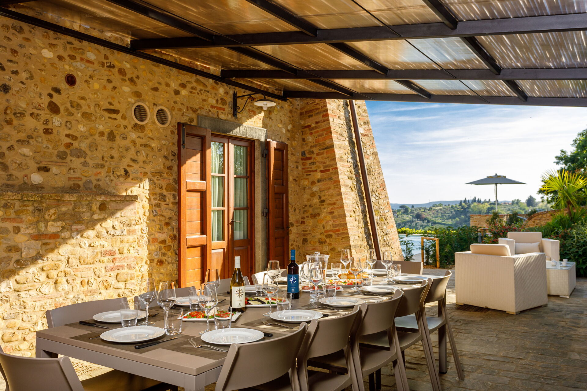 When you arrive at Villa Pianora you’ll find a lovely clean well-maintained property with views of the hills perfect for a relaxing holiday in Tuscany. After a hectic day of sightseeing, spend some time with friends and family poolside enjoying a glass of wine - a perfect way to unwind at the end the day. Outdoors you will also find a hot tub, patio and barbecue grill. If you enjoy cooking for family and friends there is a well-equipped kitchen including coffee machine, microwave, toaster, stove and refrigerator, as well as, plenty of tableware and cutlery for up to 12 people. If you prefer to dine 'al fresco', there is a fully furnished veranda where you can enjoy the weather while dining outdoors.