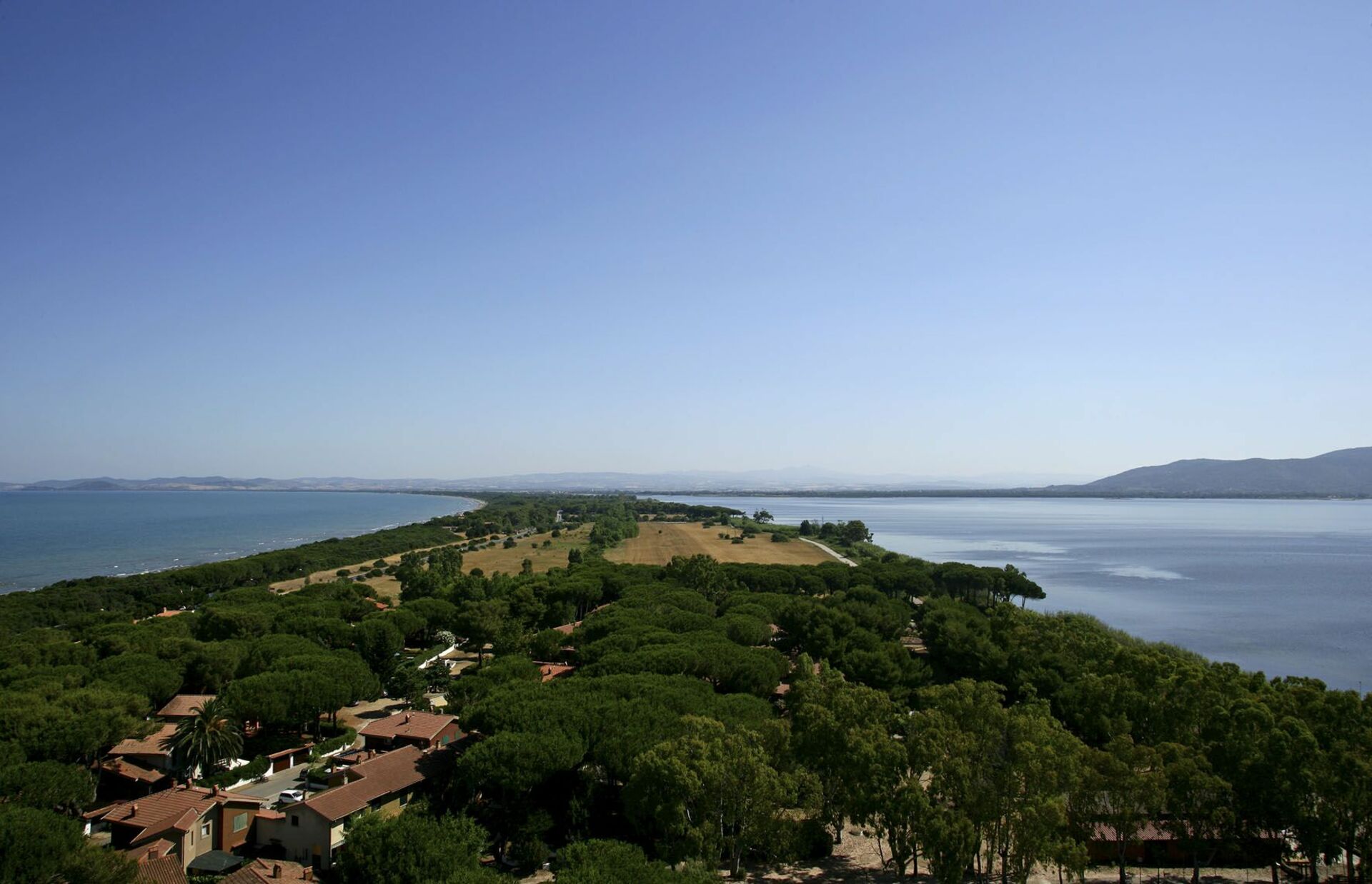 it is a thin strip of land overlooking the sea at the foot of Monte Argentario, its very fine beach extends for seven km. without interruption.
