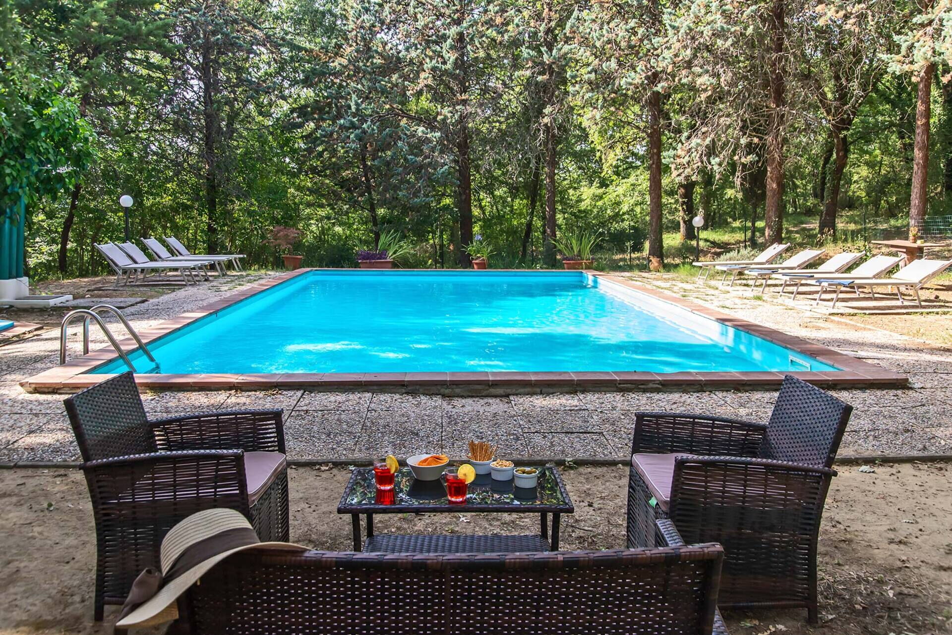 Upon arrival you will be welcomed by the owner or manager where you’ll find a beautiful clean well-maintained property with views of the hills ideal for a peaceful holiday in Tuscany. For your enjoyment you will find a private pool where you can unwind while enjoying a nice cold beverage after a hectic day of visiting museums. Also available outside are a barbecue grill, hot tub and playground. If you enjoy cooking for family and friends there is a well-equipped kitchen including coffee machine, microwave, toaster, stove and refrigerator, as well as, plenty of tableware and cutlery for up to 14 people. If you prefer to dine 'al fresco', there is a fully furnished garden where you can enjoy the weather while dining outdoors.