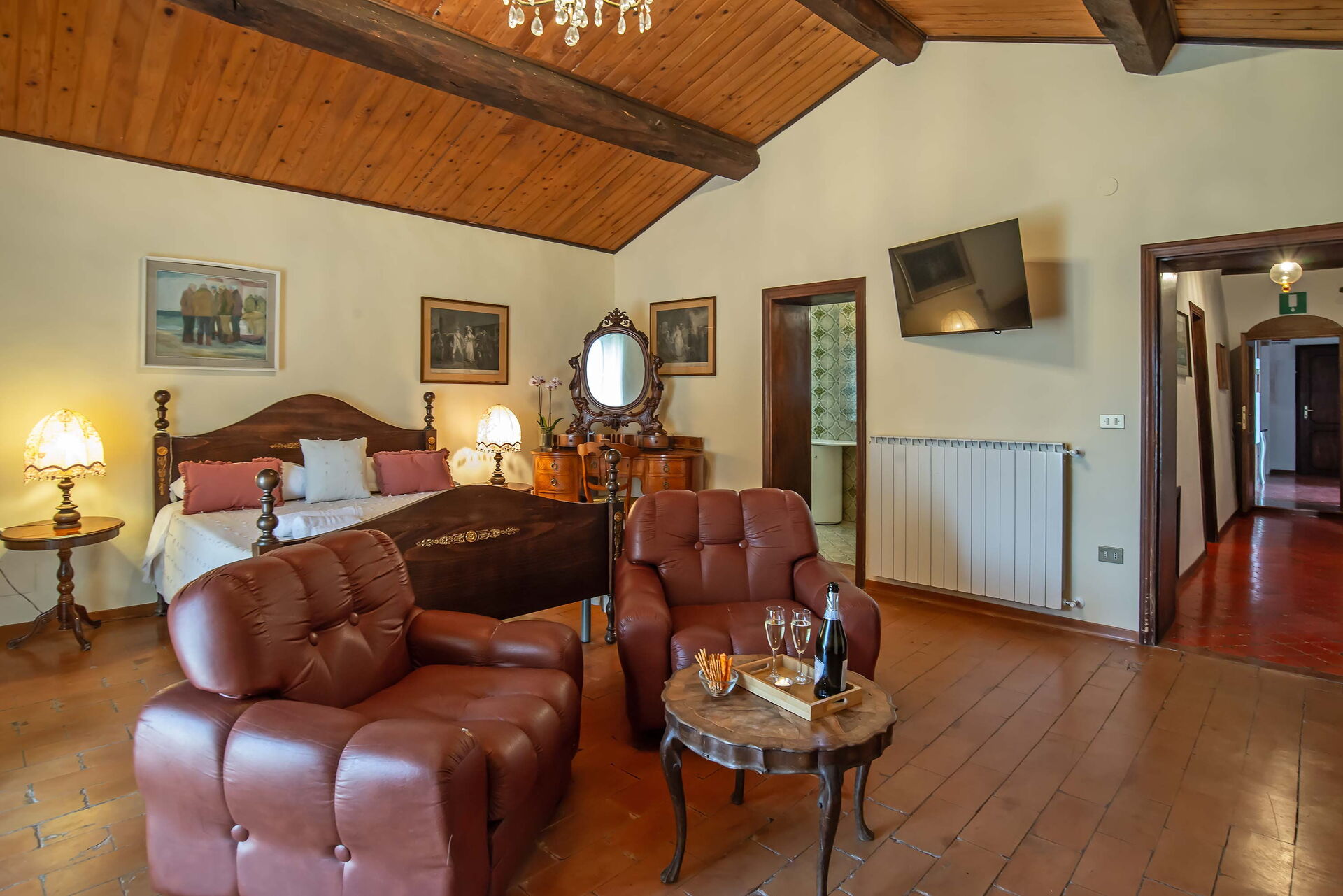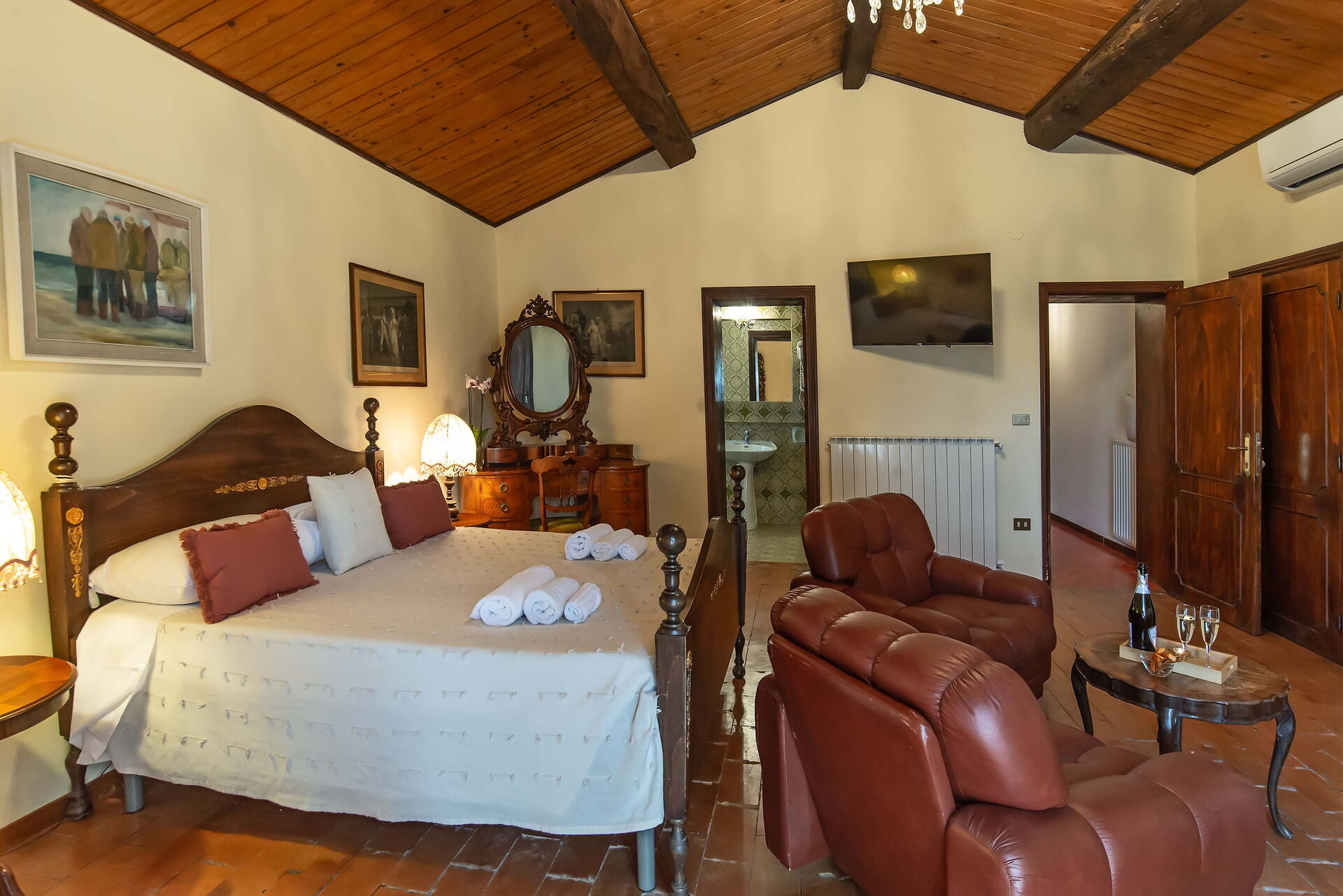 Bedroom + Ensuite Bathroom 3 (15 m2): double bed, sofa bed, WIFI internet, air conditioning, mosquito net, television, working desk, basin, toilet, bidet, shower, hairdryer.