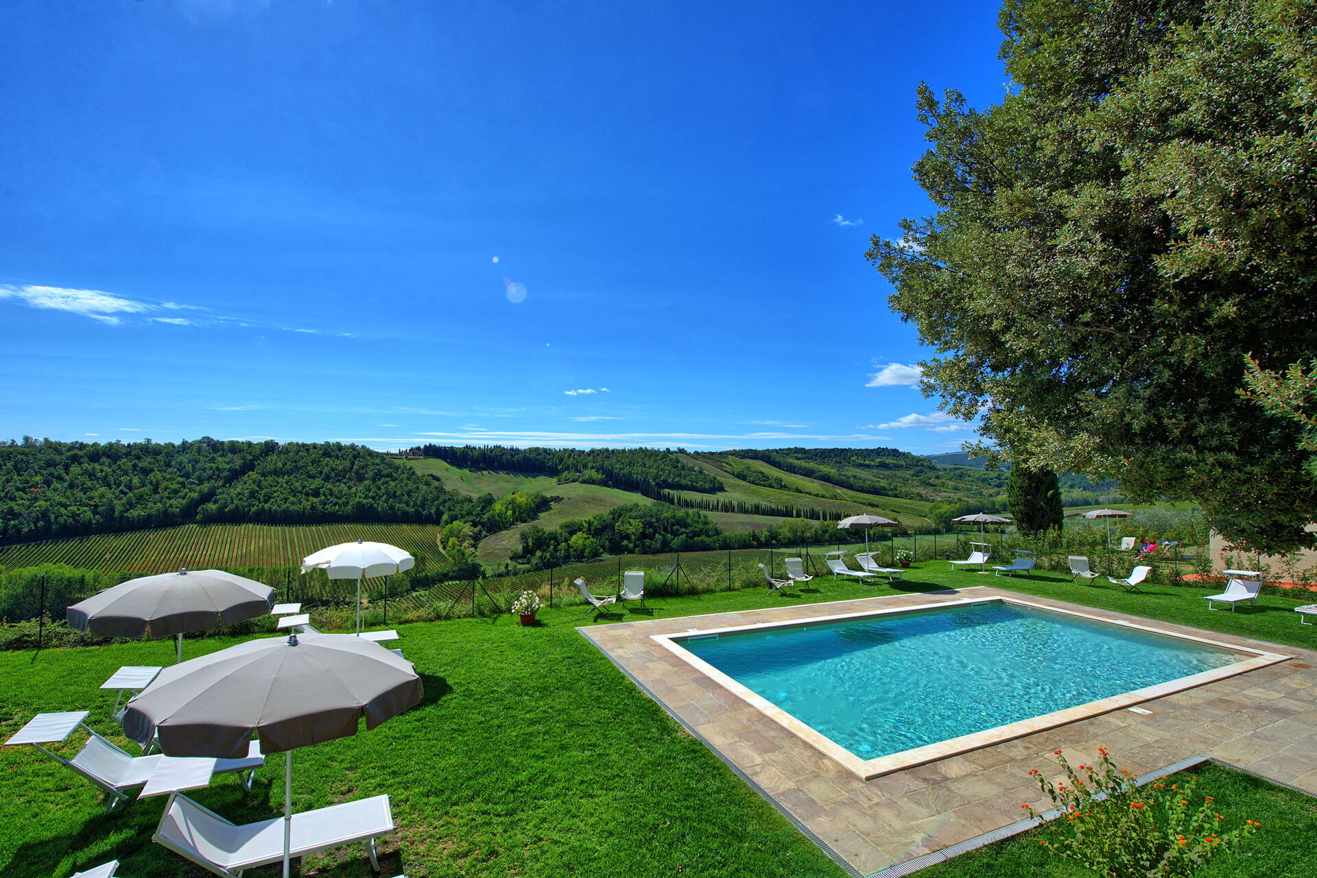 The pool is located next to the apartments, but is shared by all property guests. This exquisite property nestled in nature is perfect for a quiet vacation in the countryside. Since it sits along the famous Via Francigena, and in an area rich in wine and food, it is perfect for a quiet vacation in nature.