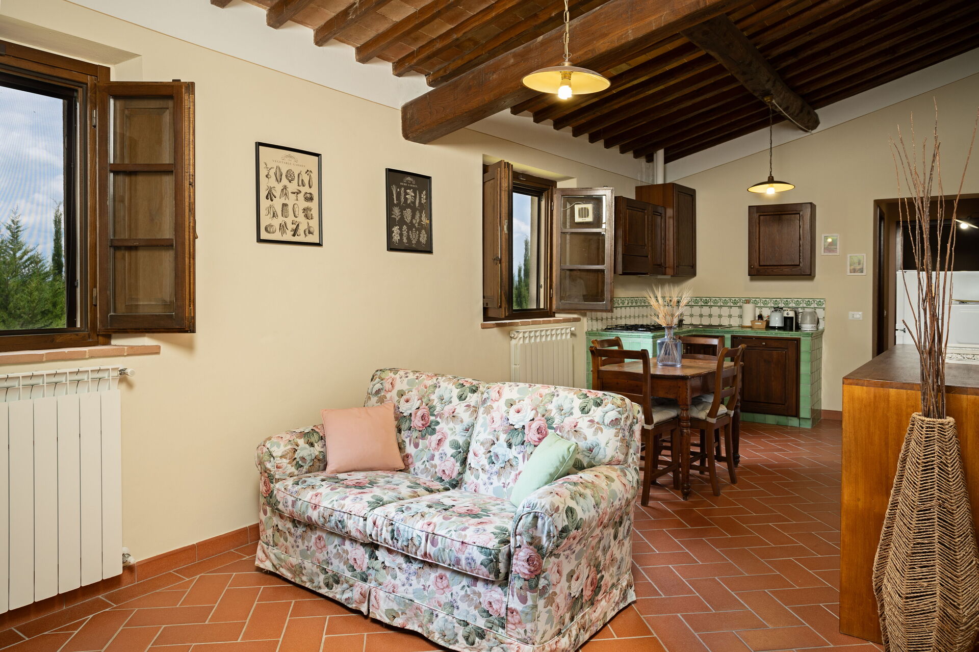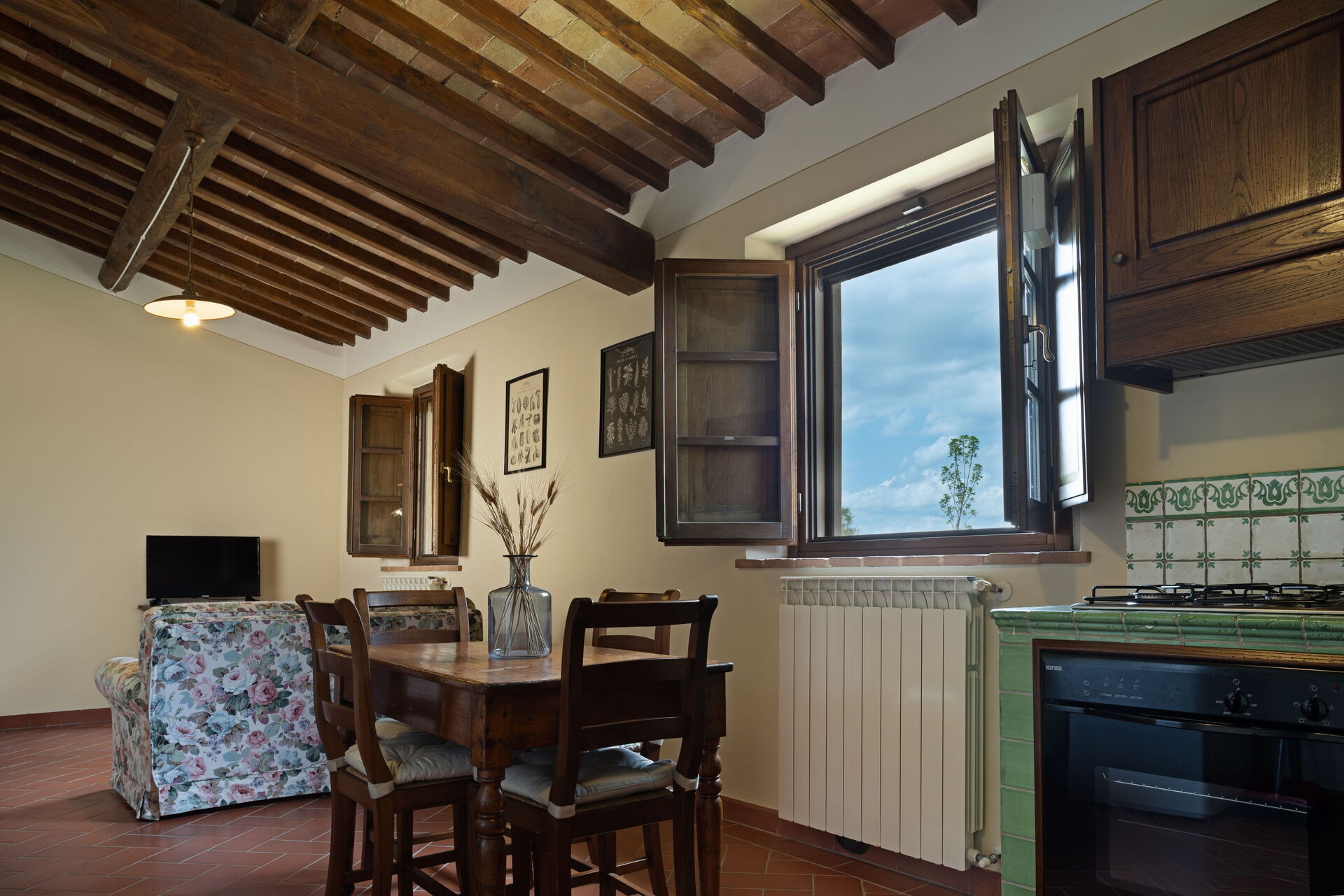 It is made up of a villa for 10 people, 5 recently-renovated apartments and one studio apartment ( 650 m away). On the property there is also the church of San Lorenzo a Montauto, and the owner’s house, which is completely independent.