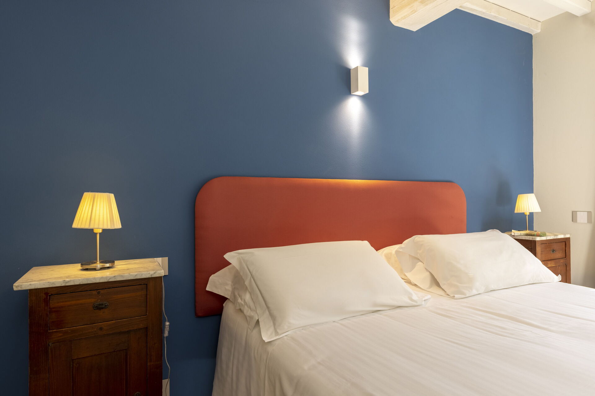 Bedroom + Ensuite Bathroom 1: double bed, air conditioning, mosquito net, basin, toilet, bidet, shower, hairdryer, exit to the garden.