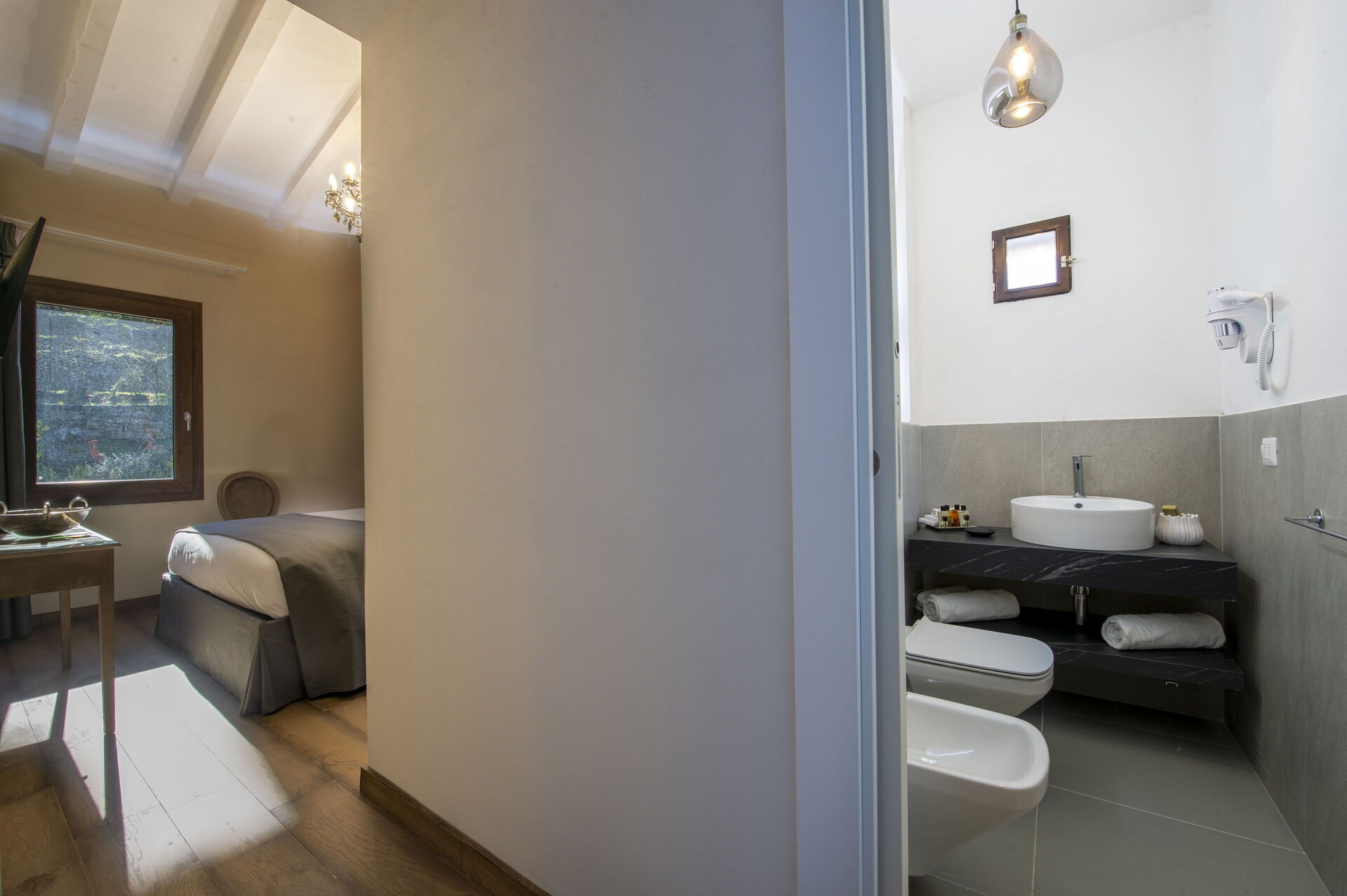 Bedroom + Ensuite Bathroom 1: double bed, WIFI internet, air conditioning, satellite tv, basin, toilet, bidet, shower.