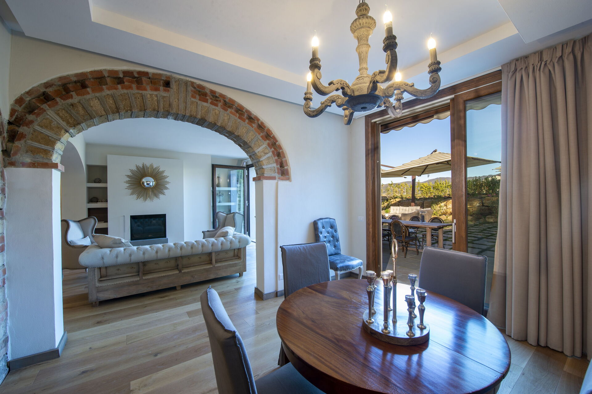 Dining room: dining table (people: 14), armchair, air conditioning, WIFI internet, exit to the garden, exit to the patio.